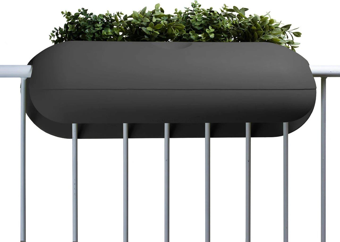 Dieser innovative Design-Pflanztopf für Balkongeländer hat eine Länge von ca. 80 cm und ein Fassungsvermögen von rund 10 Liter Blumenerde. Er kann ganz einfach an nahezu allen Balkongeländern befestigt werden, egal ob rund, eckig, flach, Beton oder Mauerwerk (bis max. 10 cm Stärke).