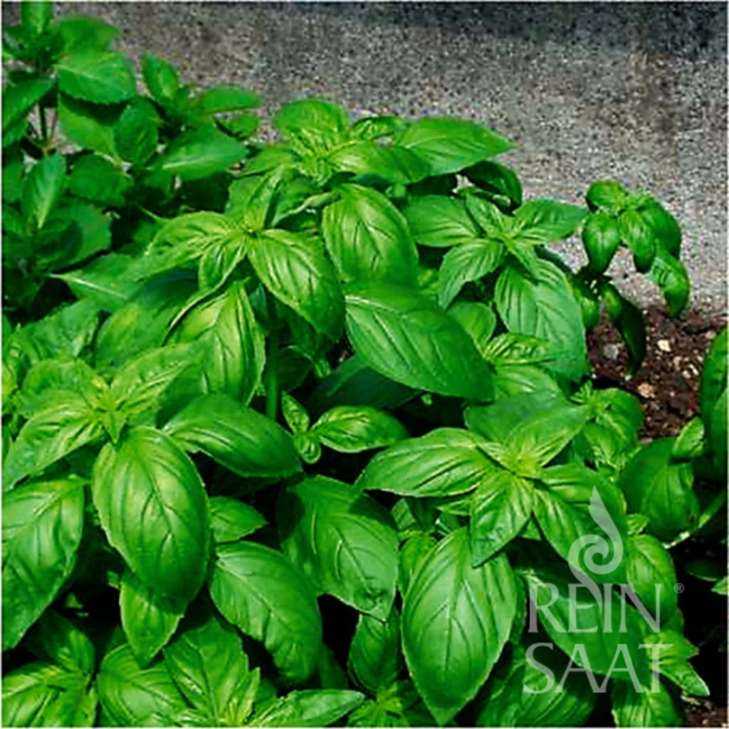 Dieses Basilikum trägt große, glänzend dunkelgrüne Blätter, die herrlich würzig schmecken und laufend geerntet werden können. Die einjährige Pflanze wird bis zu 60 cm hoch und braucht viel Wärme. Sie reagiert empfindlich auf Frost.