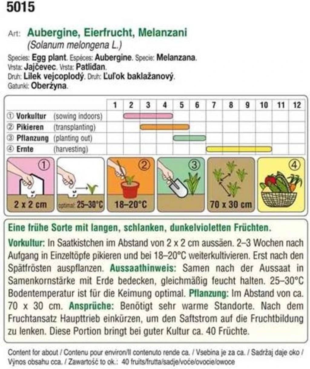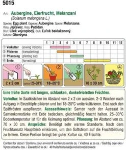 Eine frühe Sorte mit langen, schlanken, dunkelvioletten Früchten.