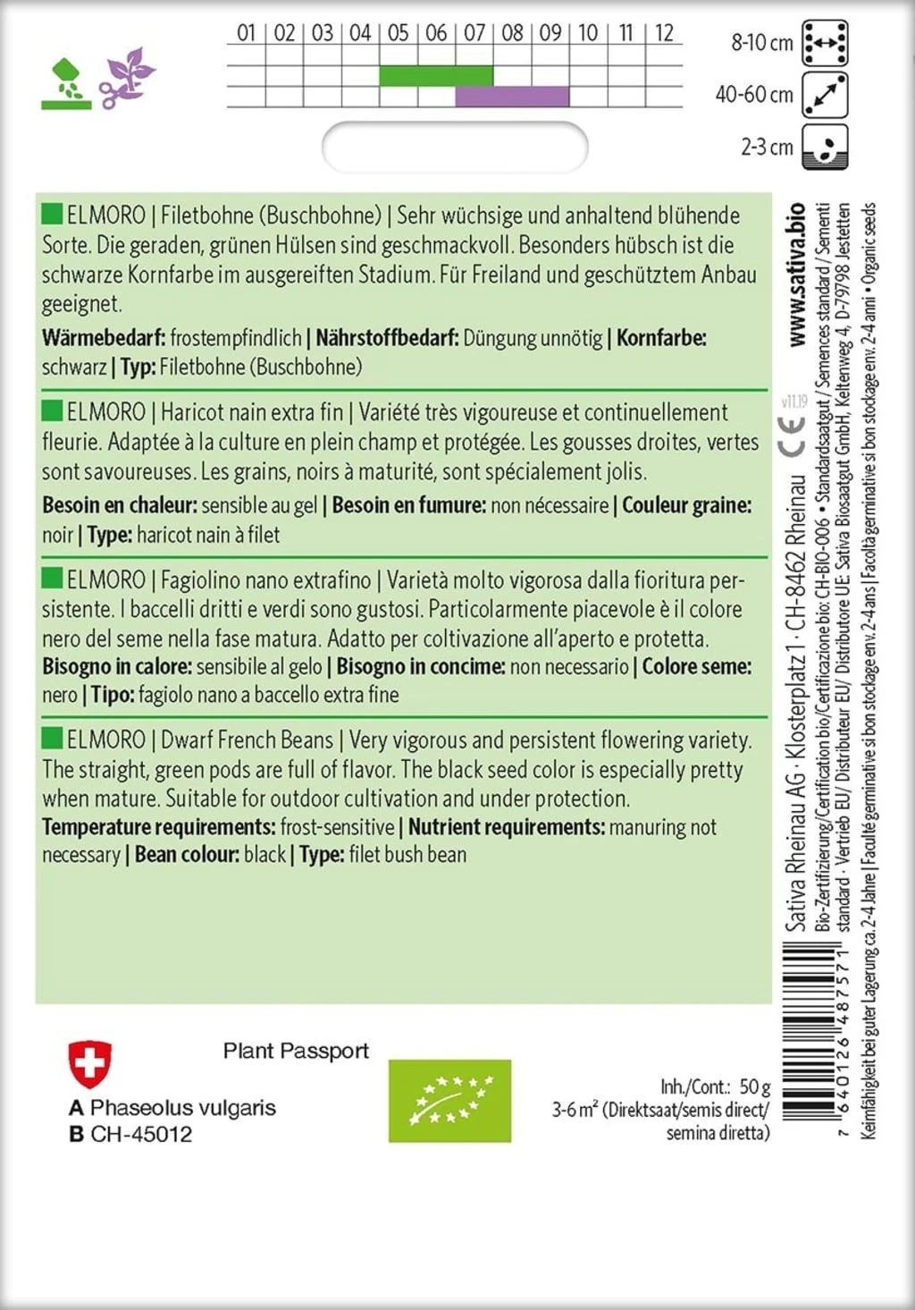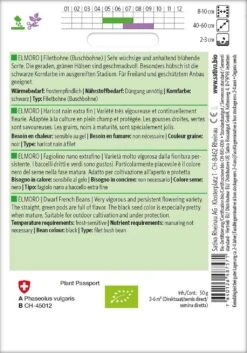 Elmoro ist eine sehr wüchsige und anhaltend blühende Sorte die für das Freiland und dem geschützten Anbau geeignet ist. Die geraden, grünen Hülsen erreichen eine Länge von ca. 16 cm.