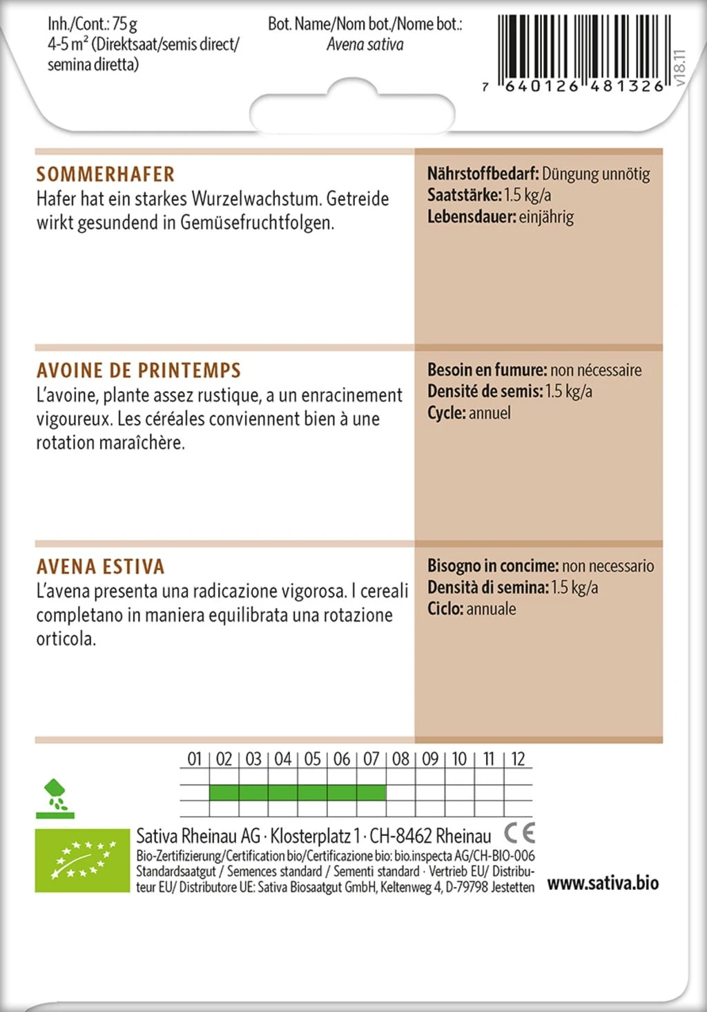 - Botanischer Name: Avena sativa