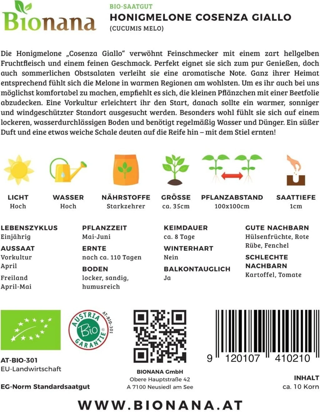 - In kalten Gegenden gedeiht die Melone eventuell nur im Gewächshaus oder Mistbeet