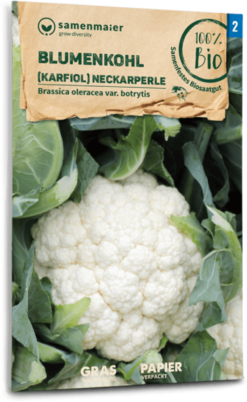 Diese Karfiolsorte bildet runde, glatte Blumen von reinweißer Farbe und ist mittelfrüh sowie ertragssicher. Das robuste Laub schützt die Blumen, sodass diese kräftig wachsen können.