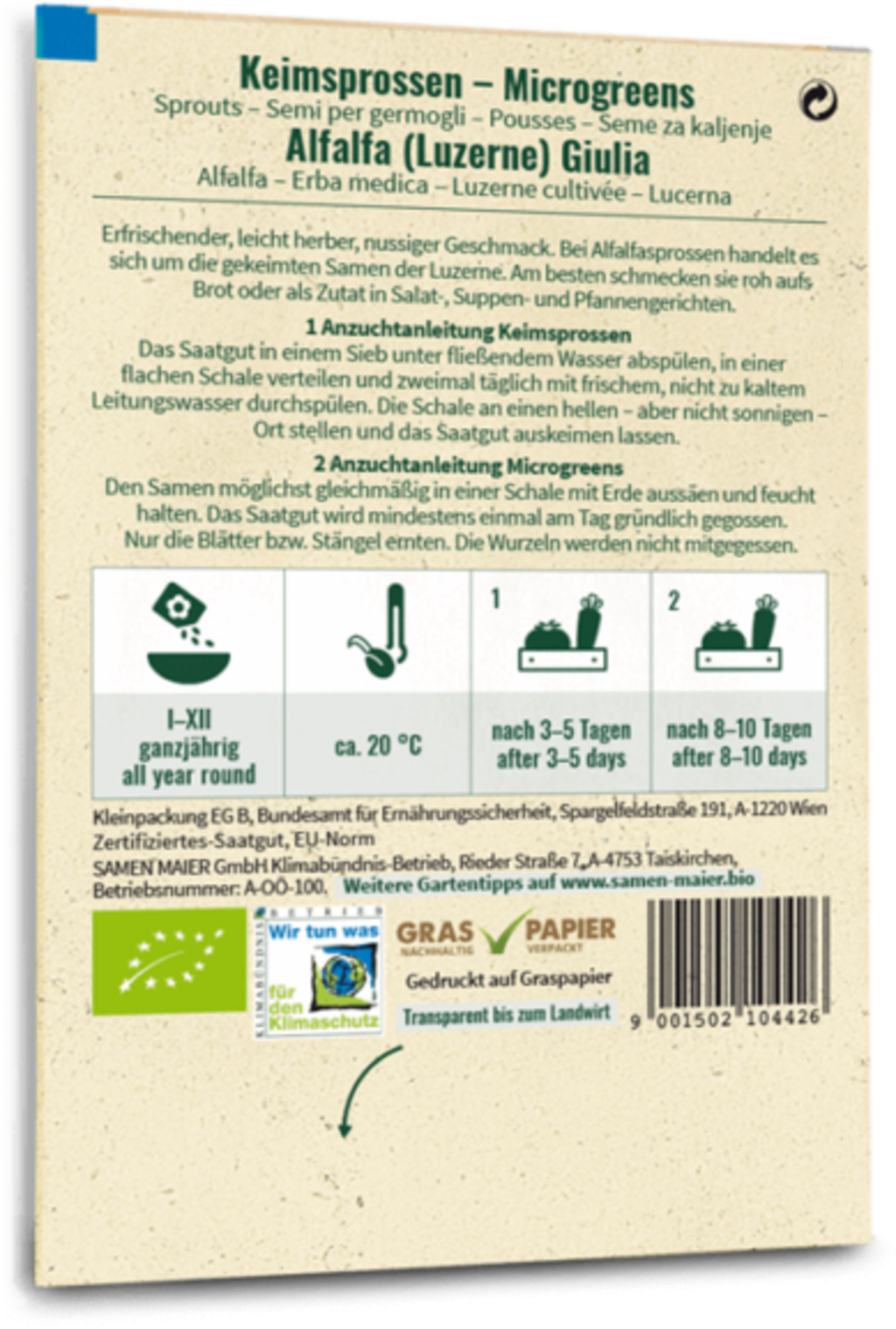 - Ernte Keimsprossen: nach 5-6 Tagen