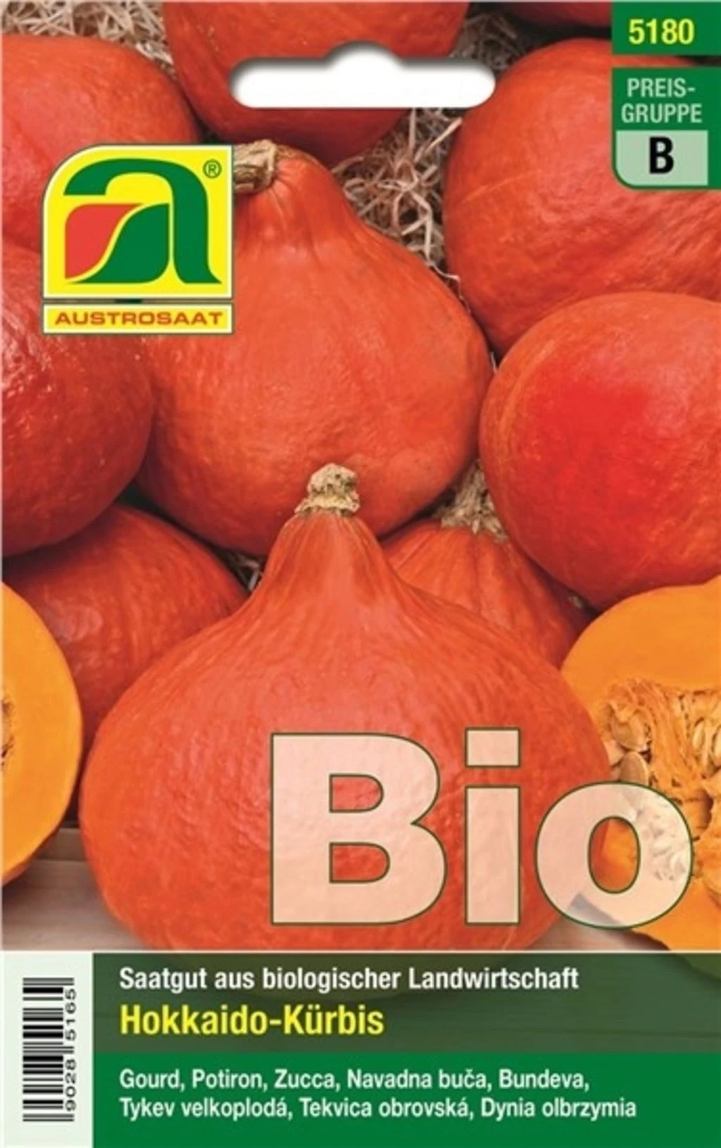 Ein rankender Speisekürbis mit Schale und Fruchtfleisch in intensivem Orange. Der Hokkaido ist der ideale Suppenkürbis, kann aber auch gegrillt oder als Beilage verwendet werden. Im Schnitt haben die Früchte ein Gewicht von ca. 1 kg.
