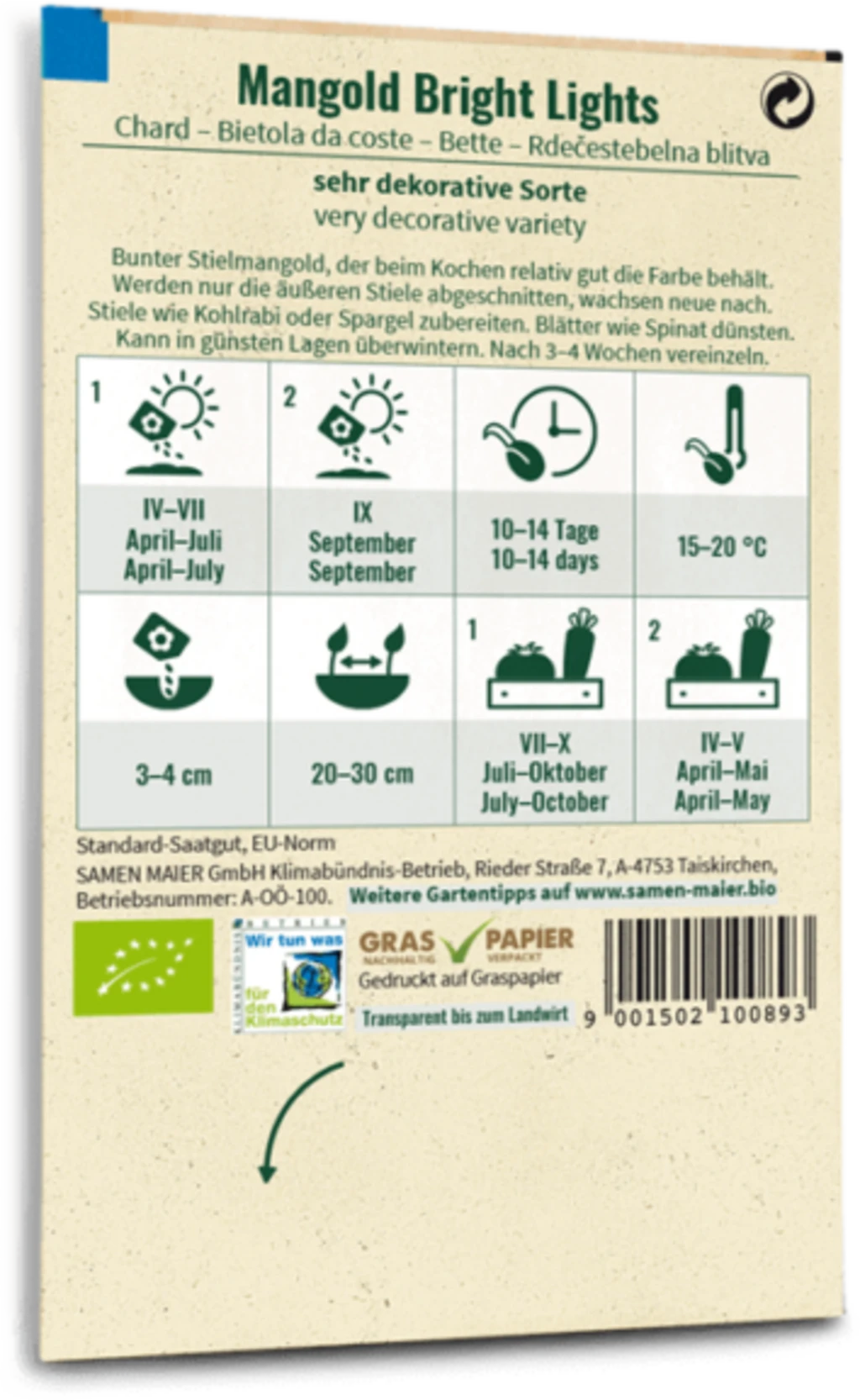 | Aussaattermin: | April, Mai, Juni, Juli, September |