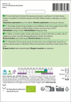 Eine rasch wachsende Sorte mit dunkelgrünen, rundlichen Blättern. Besonders geschätzt wird das nussige Aroma. Tolerant gegen falschen Mehltau und dadurch bestens für den Herbst- und Winteranbau geeignet. Eine Kultur ist sowohl im Freien, unter Glas sowie Folie möglich.