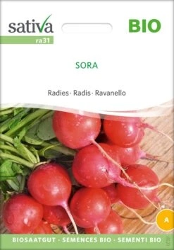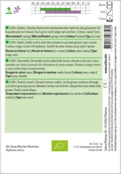 Diese Sorte bilde prachtvolle karminrote Radieschen mit schöner runder Form, die auch groß noch zart und fest sind.
