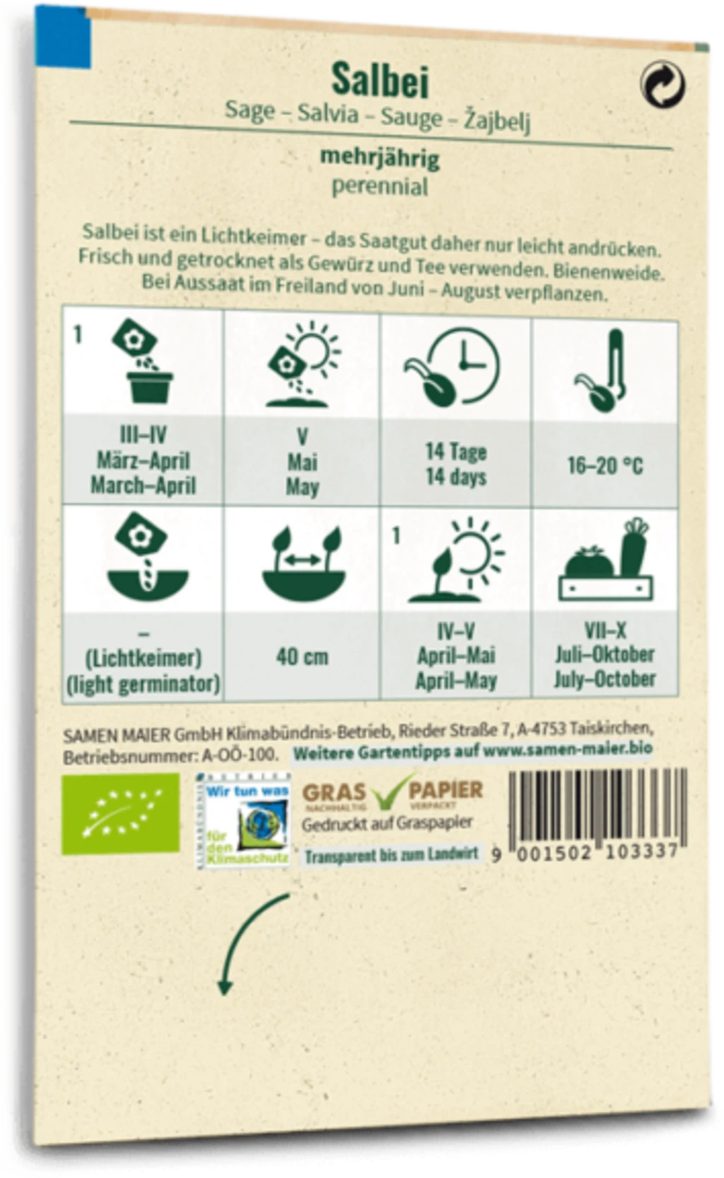 Unser Tipp: Da Salbei ein Lichtkeimer ist, solltest du die Samenkörner bei der Aussaat nicht mit Erde bedecken, sondern nur leicht andrücken.