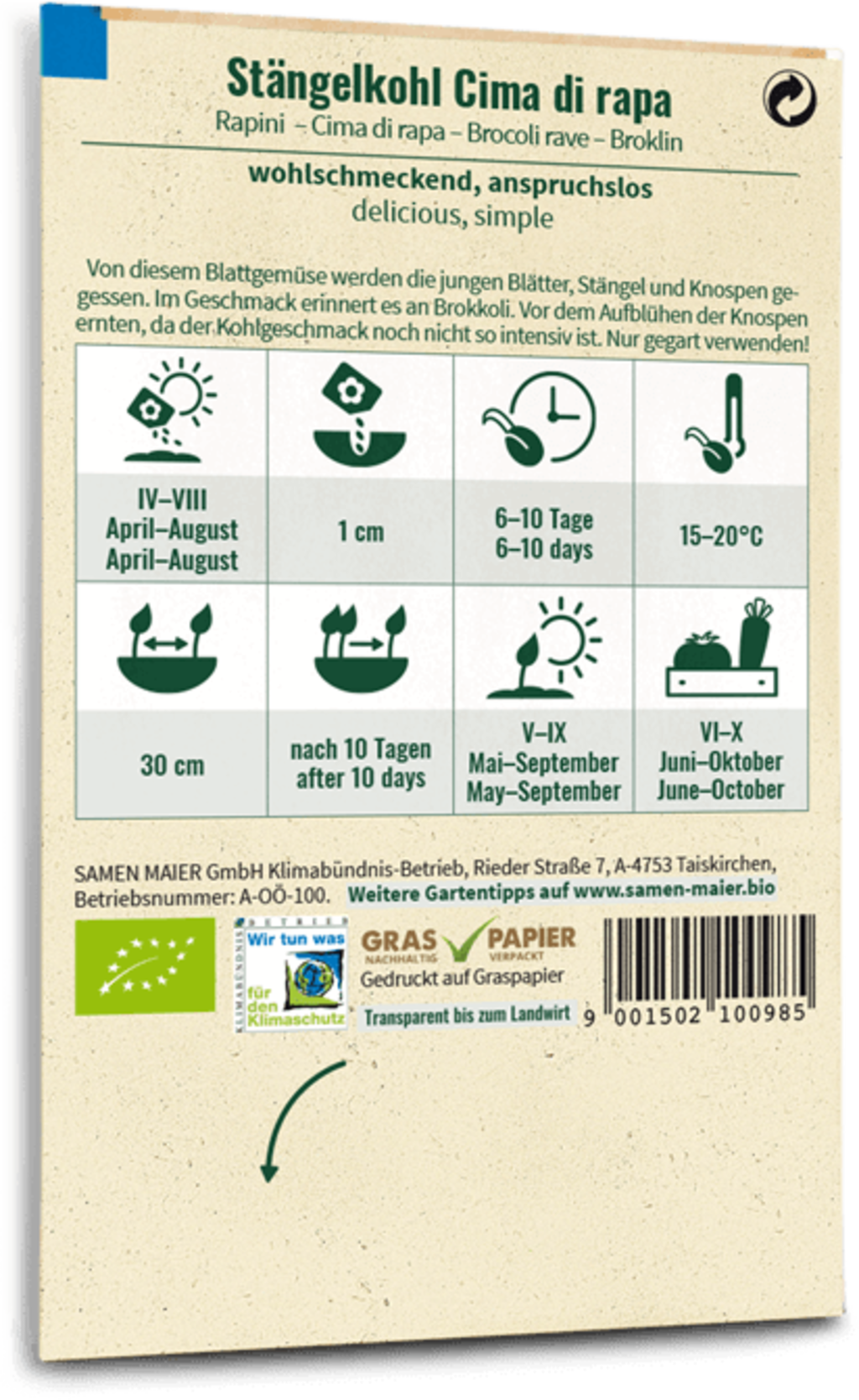 | Aussaattermin: | April, Mai, Juni, Juli, August |
