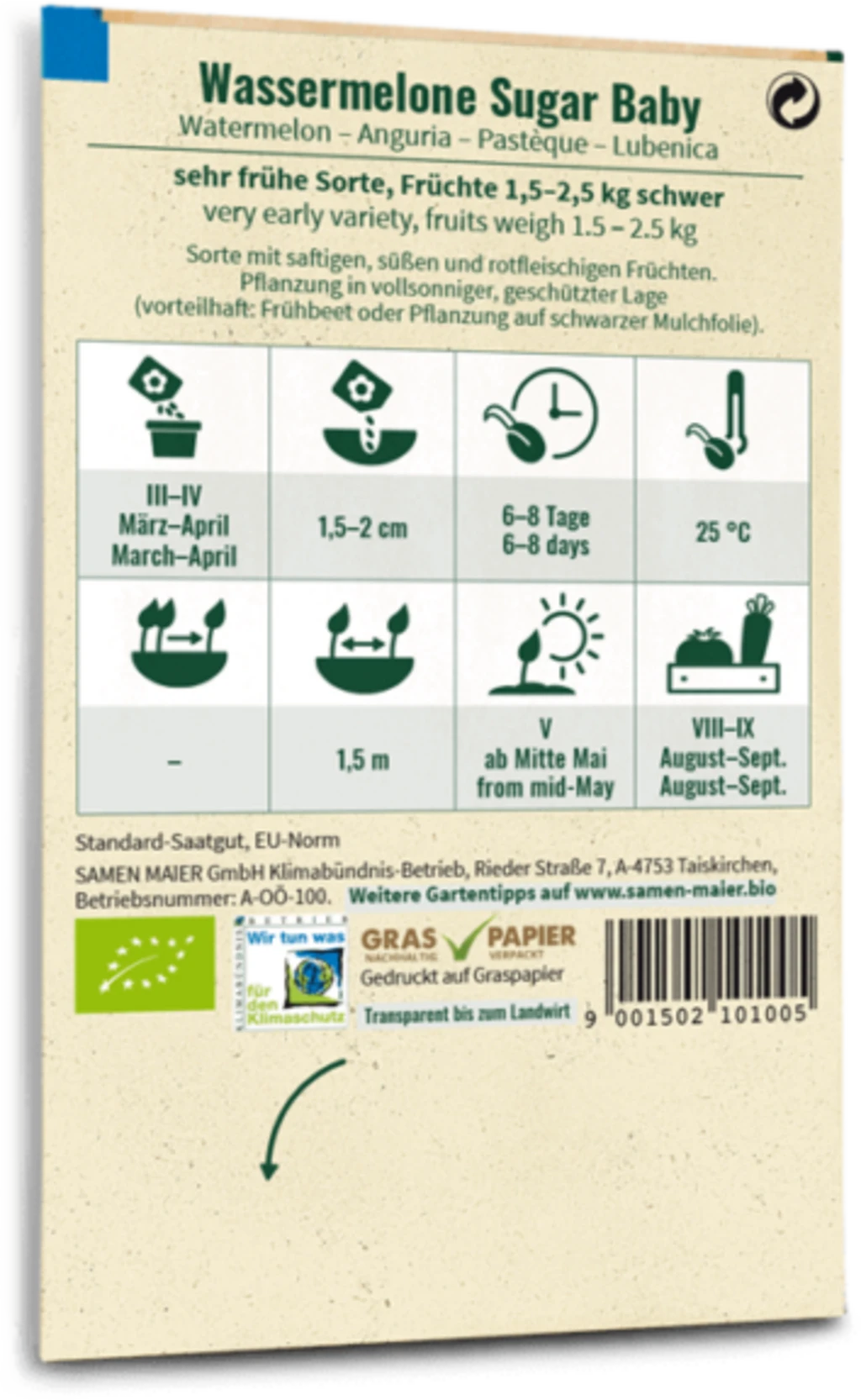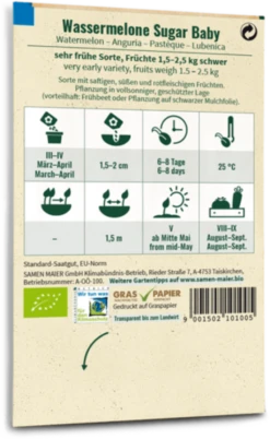 Diese sehr frühe Sorte begeistert mit ihrem süß-saftigen und leuchtend roten Fruchtfleisch, das sie zu einem ganz besonderen Genuss an heißen Sommertagen macht. Sie bevorzugt einen humosen, nährstoffreichen Boden in geschützter, aber sonniger Lage. Besonders vorteilhaft ist eine Pflanzung auf schwarzer Mulchfolie, im Frühbeet oder im Mistbeet. Achte immer darauf, dass die Pflanzen viel Wärme bekommen und versorge sie gut mit Wasser.