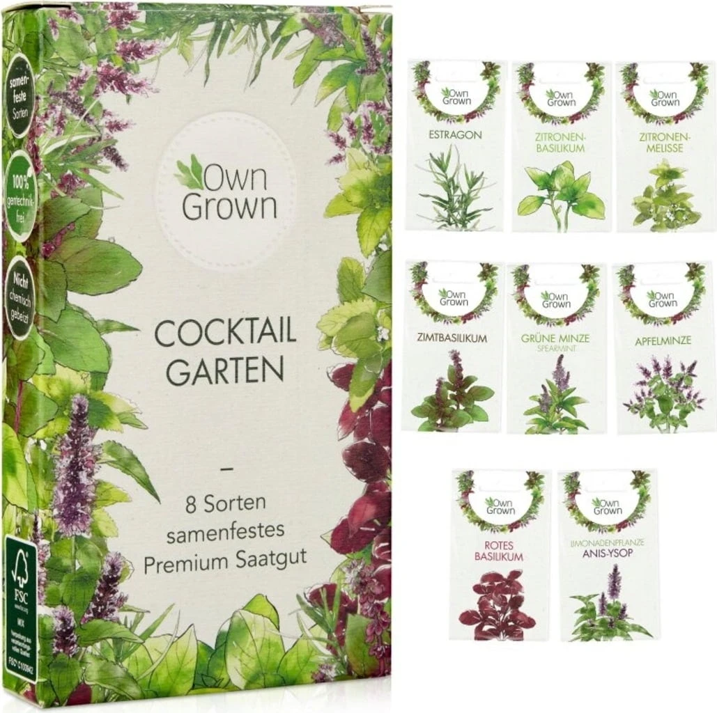 Cheers! Dieses Set enthält mit acht samenfesten Saatgutsorten alles, was du brauchst, um deinen Cocktails und alkoholfreien Erfrischungsgetränken das gewisse Etwas zu verleihen. Der kunterbunte Kräuter-Mix eignet sich für die Anzucht im Garten ebenso gut wie für die Kultur in großen Töpfen und bietet dir einzigartige Vielfalt. So macht Cocktails mixen gleich noch mehr Spaß!