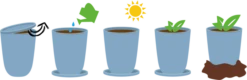 - Nach ca. 6 Monaten Banderole von der Dose entfernen und die gesamte ecocan in einen Blumentopf mit etwas Erde verpflanzen (die Dose zersetzt sich langsam und wird zu wertvollem Dünger für die Pflanze)