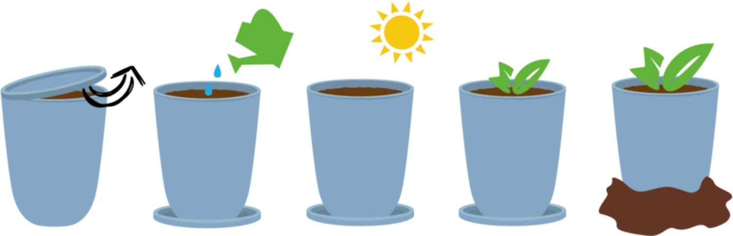 In das in der ecocan befindliche Nährgranulat sind die Samen bereits mit eingemischt. Du musst dir somit deine Hände nicht mit Erde schmutzig machen. Einfach die Dose öffnen, Deckel als Untersetzer verwenden, wässern und nach wenigen Tagen sprießen die ersten Pflänzchen aus der ecocan. Wenn diese zu groß für die ecocan geworden sind, können sie vorsichtig in einen Blumentopf mit etwas Erde oder ins Freie umgepflanzt werden.