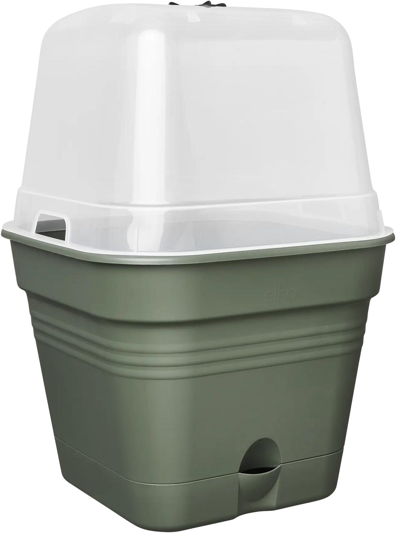 Mit diesem quadratischen Anzuchttopf aus recyceltem Kunststoff gelingt die Anzucht von Obst-, Gemüse- und Kräuterpflanzen ganz einfach, denn er bietet zarten Pflänzchen die optimalen Wachstumsbedingung. Dank integriertem Wasserreservoir haben deine Pflanzen immer ausreichend Wasser zur Verfügung und du musst dir nicht dauernd Gedanken ums Gießen machen. Der inkludierte Anzuchtkasten schützt deine Pflanzen vor direkter Sonneneinstrahlung sowie Insekten und Vögeln sorgt und zudem für ein optimales Wachstumsklima. So kannst du dich schon bald über kräftige selbst gezogene Pflanzen freuen.