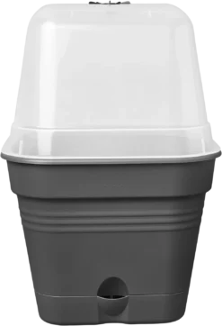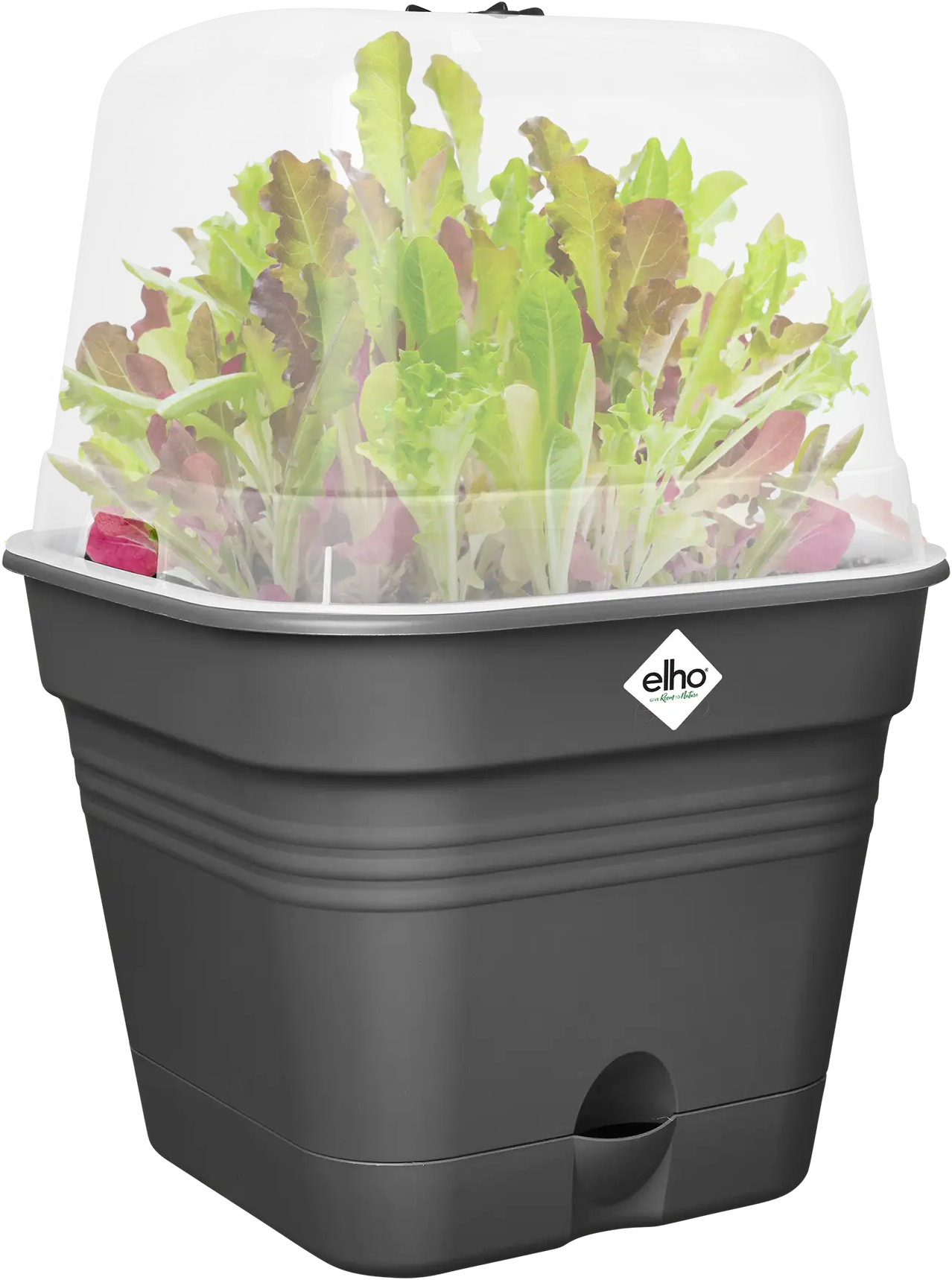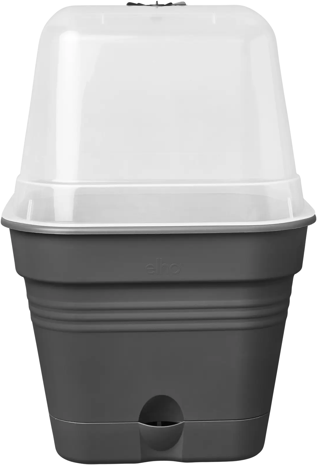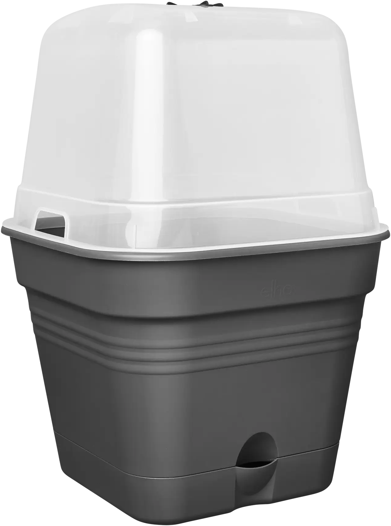 Mit diesem quadratischen Anzuchttopf aus recyceltem Kunststoff gelingt die Anzucht von Obst-, Gemüse- und Kräuterpflanzen ganz einfach, denn er bietet zarten Pflänzchen die optimalen Wachstumsbedingung. Dank integriertem Wasserreservoir haben deine Pflanzen immer ausreichend Wasser zur Verfügung und du musst dir nicht dauernd Gedanken ums Gießen machen. Der inkludierte Anzuchtkasten schützt deine Pflanzen vor direkter Sonneneinstrahlung sowie Insekten und Vögeln schützt und zudem für ein optimales Wachstumsklima sorgt. So kannst du dich schon bald über kräftige selbst gezogene Pflanzen freuen.