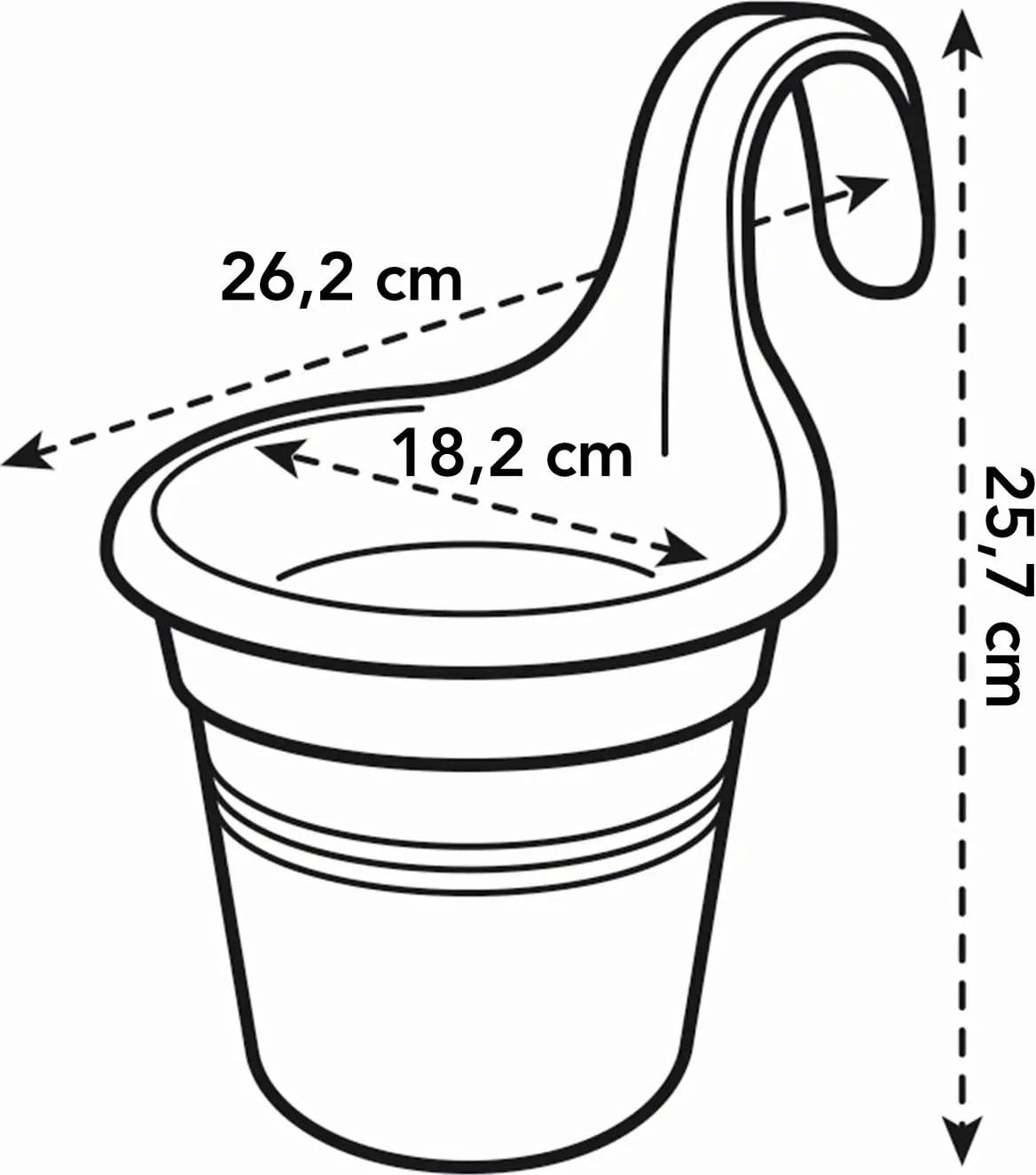 - Der Topf passt an ein Geländer mit einer Breite von bis zu 6 cm