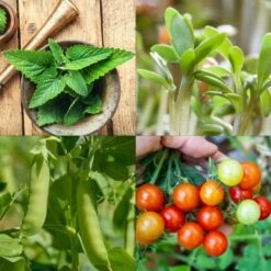 Lila Radieschen, Mini Möhre, Zitronen-Basilikum, Balkon-Erdbeere, Balkon-Tomate, Zuckererbse, Pflücksalat, Gartenkresse, Salatrauke, Zitronenmelisse