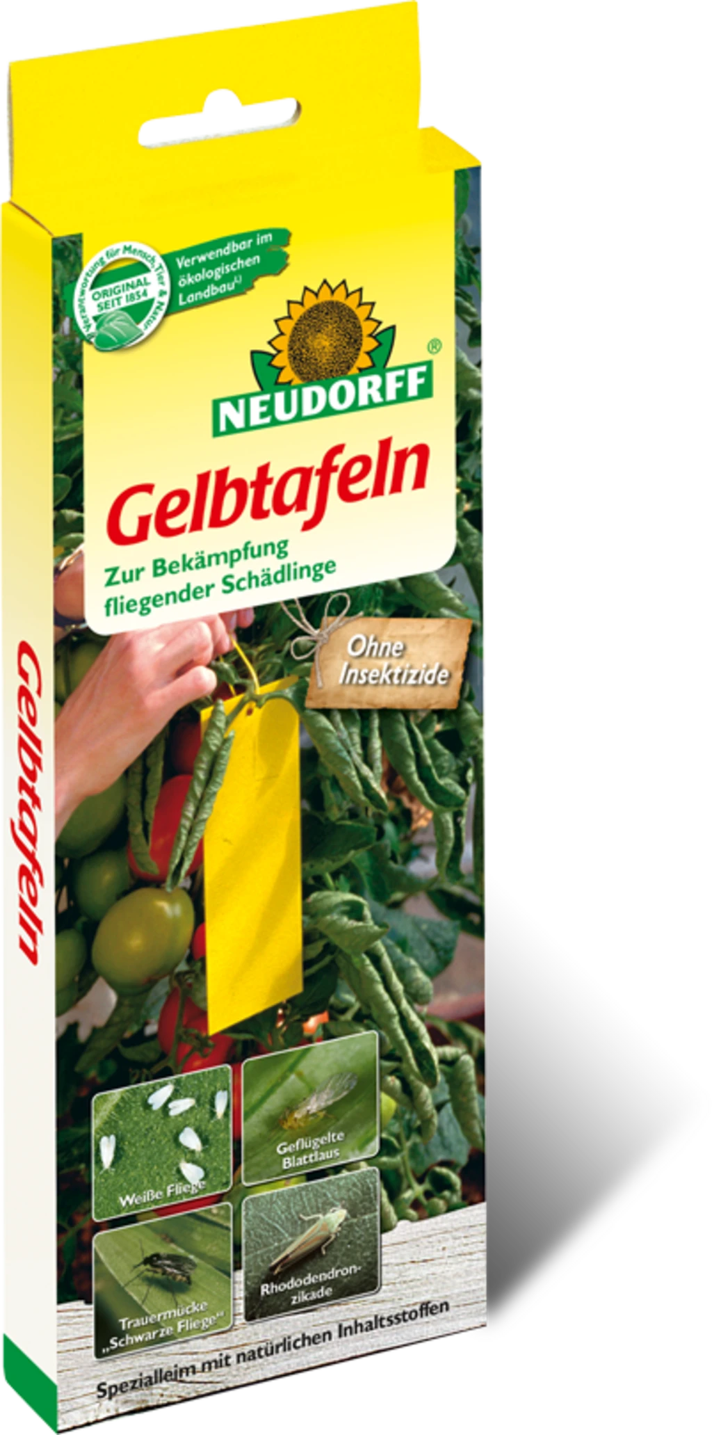 Zur Bekämpfung von fliegenden Schädlingen wie z.B. Trauermücke („Schwarze Fliege“), Weiße Fliege, geflügelte Blattlaus und Minierfliege. Ideal für den Einsatz im Gewächshaus und Wintergarten. Eignet sich auch zum Abfangen von Rhododendronzikaden im Freiland. Fix und fertig beleimt mit geruchlosem, insektizidfreiem Spezialleim, der auch bei höheren Temperaturen nicht abtropft.