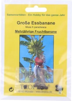 Diese 2 bis 3 Meter hohe „Urbanane“ wird schon seit Jahrtausenden angebaut. Die Bananenstaude ist mehrjährig und an ihren großen, über 1 Meter langen Blättern leicht zu erkennen. Aus dem Scheinstamm kann sich nach 3 bis 4 Jahren der nach unten gekrümmte Blütenstand mit einer rötlich bis violett gefärbten Blüte entwickeln. Nach der Fruchtausbildung stirbt die Pflanze ab. Vorher hat sie jedoch unterirdisch aus dem Rhizom Schößlinge getrieben, aus denen neue Pflanzen heranwachsen.