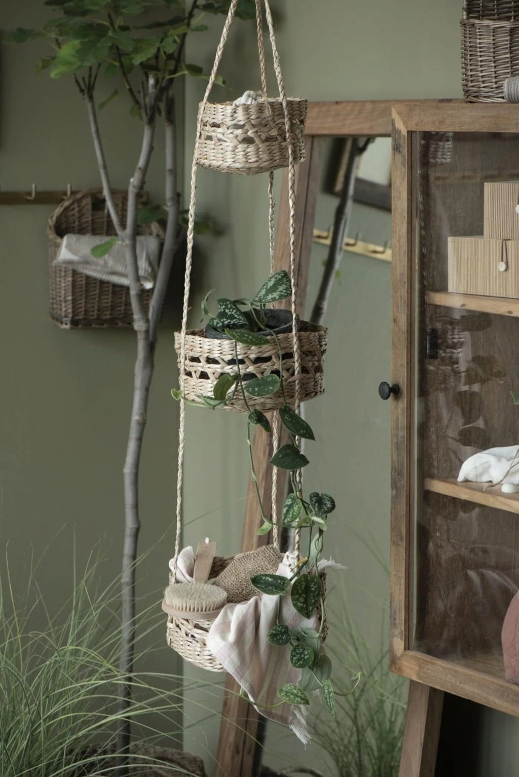 Diese drei miteinander verbundenen Hängekörbe eignen sich nicht nur hervorragend als ästhetische Aufbewahrungslösung für Badezimmer und Home Office, sondern auch als zauberhafte Pflanzgefäße. So kannst du deinen eigenen kleinen Hängegarten Wirklichkeit werden lassen und dein Zuhause auf einzigartige Weise begrünen.