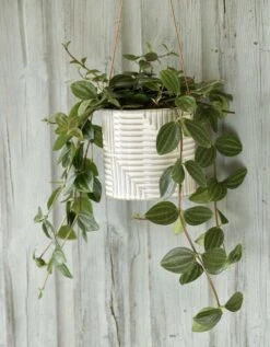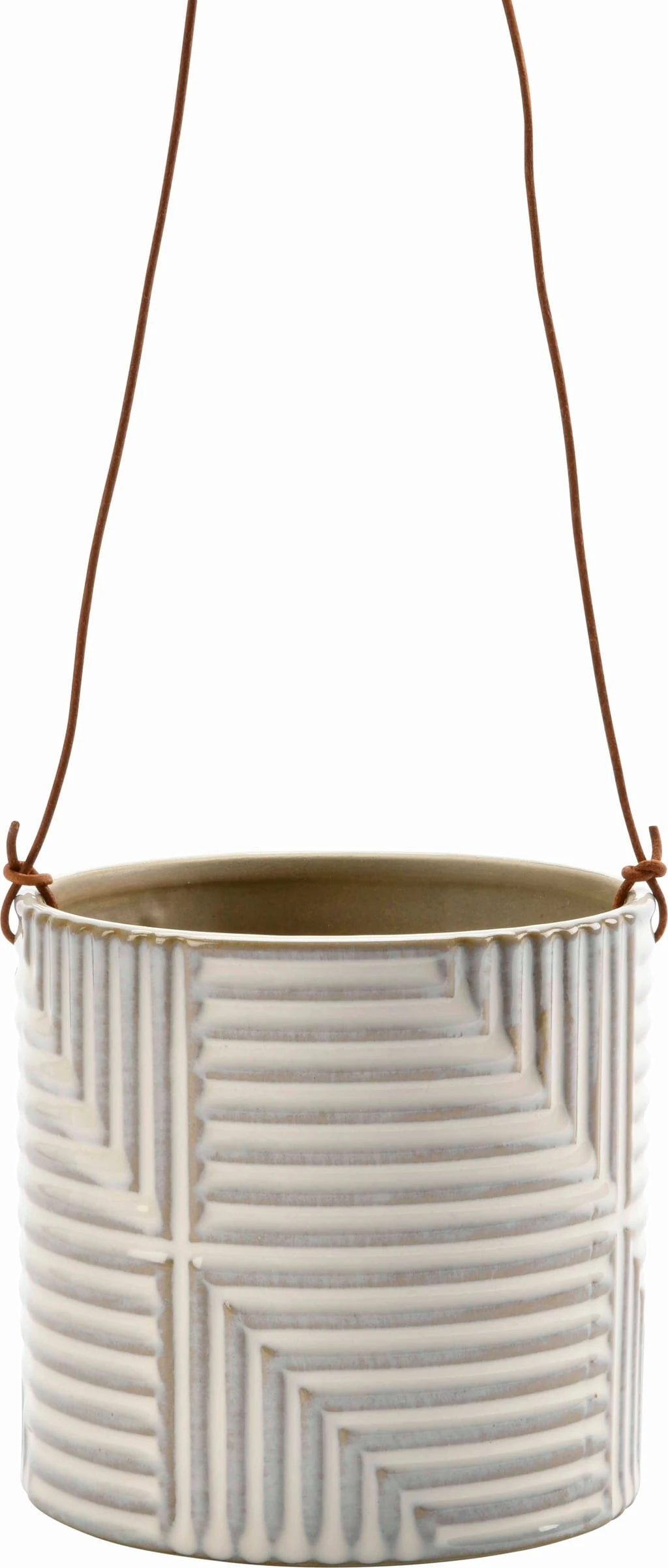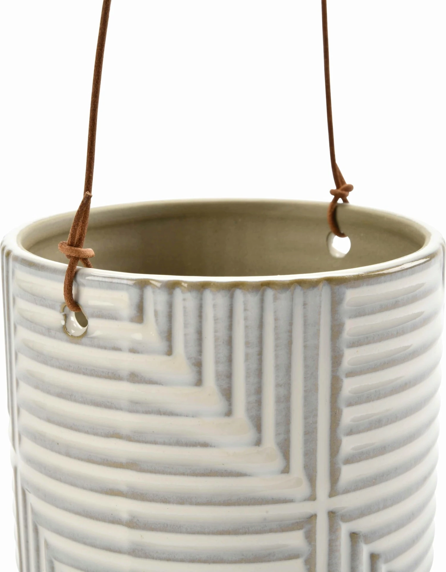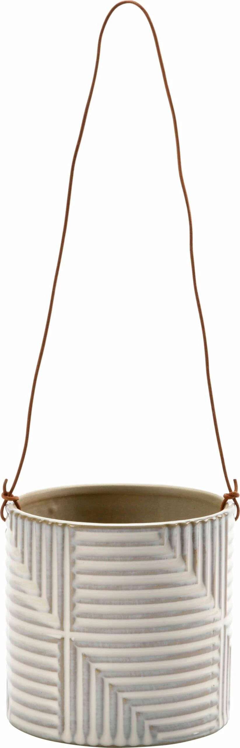 Hängeblumentöpfe sind eine tolle Möglichkeit, dein Zuhause zu begrünen – besonders, wenn sie so stylish sind wie dieses Modell. Sein geometrisches Muster, die edle weiße Glasur und die hochwertige Lederschnur machen diesen Pflanztopf zu einem einzigartigen Eyecatcher, mit dem du auf stilvolle Weise Grün in deine vier Wände bringen kannst.