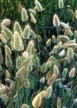 Das einjährige Zwerggras mit seiner Höhe von 2 – 4 cm setzt 4 cm lange Blütenstiele an, an deren Enden die 2 – 7 cm langen, puffigen, samtweichen Blüten sitzen. Da sie durch Form und die wollige, weiße Behaarung wie kleine Hasenschwänze aussehen, werden sie auch `Bunny-Tails` genannt. Das Gras wächst einzeln, auch in Horsten und die graugrünen flachen Blätter sind samtig behaart. Die Blütenstiele sind wunderbar für die Vase oder für Schnittblumen-Arrangements geeignet.
