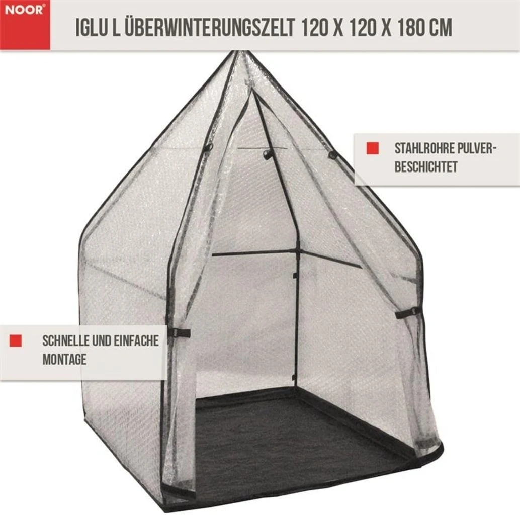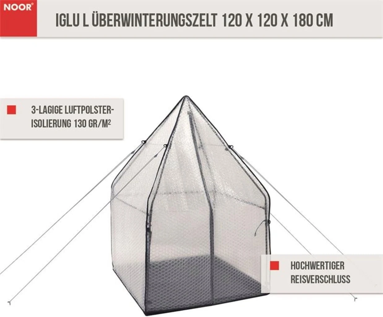 Wenn der Winter einbricht, benötigen kälteempfindliche Topf- und Kübelpflanzen den passenden Schutz. Das Überwinterungszelt leistet mit seinen isolierenden Eigenschaften hervorragende Dienste und kann dort aufgestellt werden, wo es benötigt wird, egal ob im Garten, auf der Terrasse oder am Balkon. Dank ausgefeiltem Stecksystem ist das IGLU schnell und einfach aufgebaut. Sehr praktisch ist der hochwertige Reißverschluss, der das Öffnen und Schließen so unkompliziert wie möglich macht. Hervorzuheben ist die Höhe des Zeltes, mit der auch größere Pflanzen Zuflucht vor der Kälte finden.