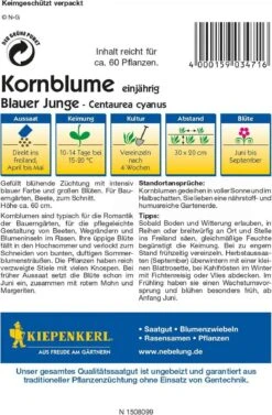 Die Kornblumen sind charakteristisch für die Romantik der Bauerngärten, für die pflegeleichte Gestaltung von Beeten, Wegrändern und Blumeninseln im Rasen. Die üppige Blüte verlockt zum Schneiden von bunten, duftigen Sommerblumensträußen. Bei früher Aussaat setzt die Blüte schon im Juni ein. Kombinieren Sie die Kornblume mit rotem Mohn und Margeriten!