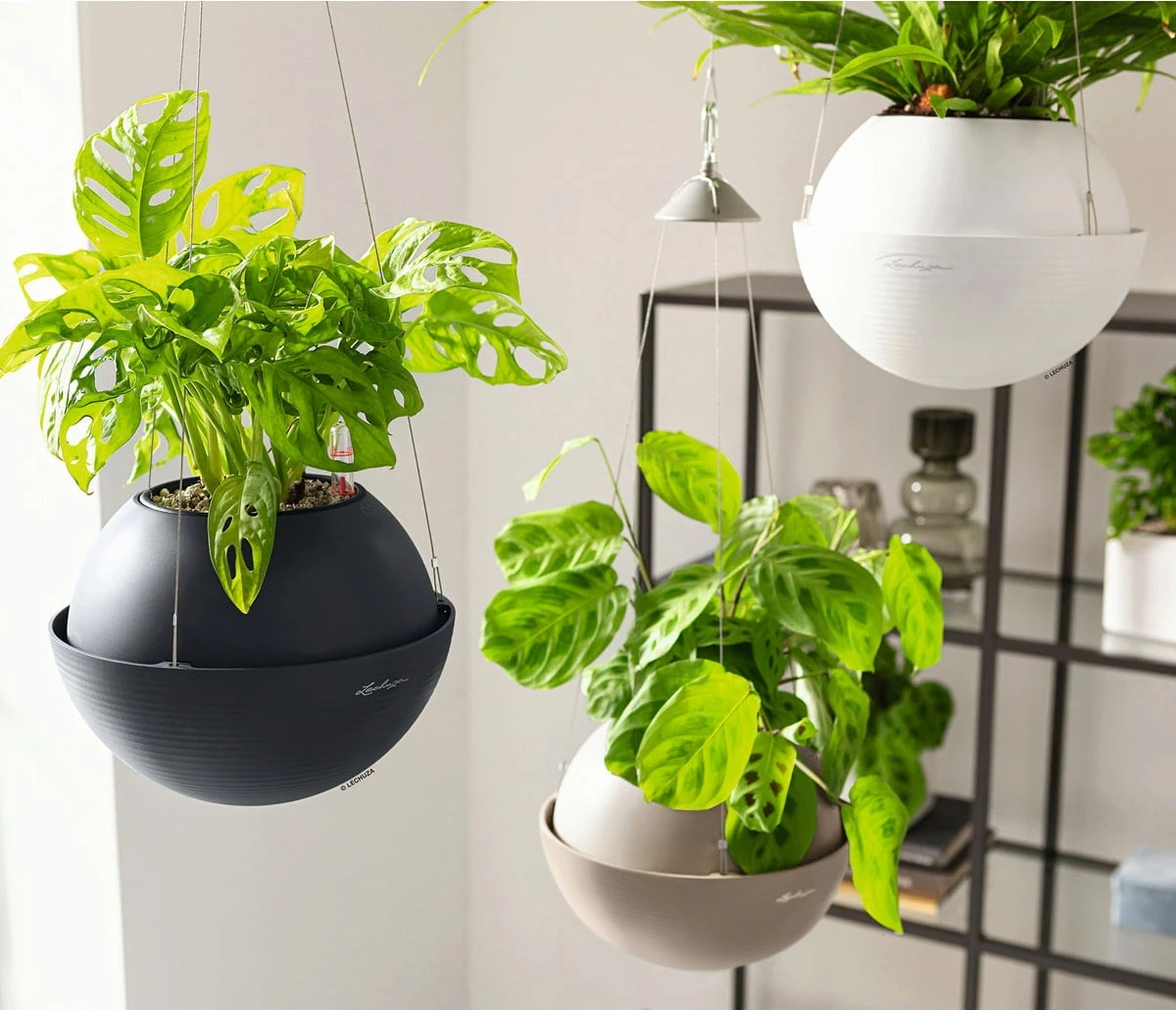 Lieferumfang: „All-in-One“-Set, bestehend aus Pflanzgefäß, herausnehmbarem Pflanzeinsatz, Lechuza-Bewässerungsset & Edelstahl-Aufhängung