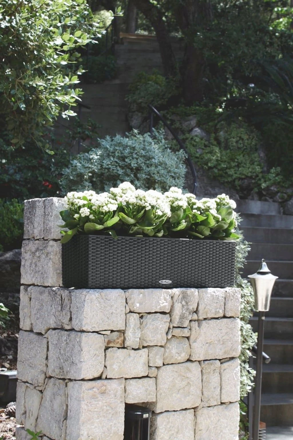Der Balkonkasten BALCONERA von LECHUZA lässt auch bei größter Hitze die Pflanzen nicht hängen. Dank der großen Wasserreservoirs (5 Liter) erhalten sie ausreichend Flüssigkeit. Ganz einfach die Pflanzeinsätze auf dem Boden oder Tisch bepflanzen und danach in den Balkonkasten setzen. Außerdem überzeugt der Balconera Cottage 80 durch sein ansprechendes Design (reddot design award winner 2010).