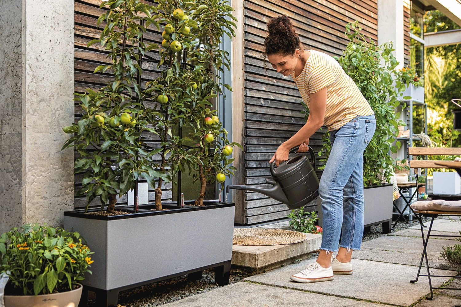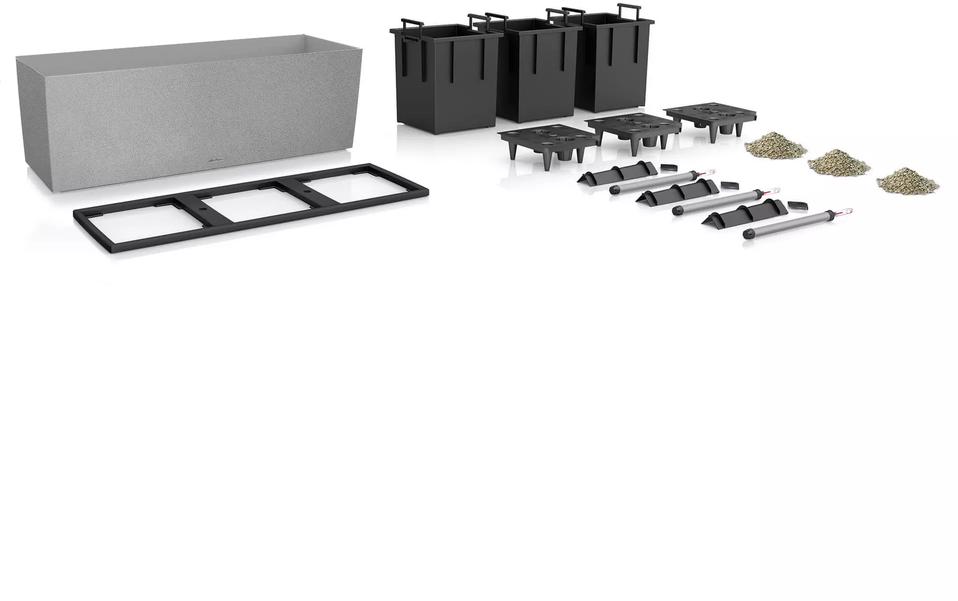 Das elegante Pflanzgefäß TRIO Stone 40 begeistert sowohl mit seinem zeitlosen Design in attraktiver Steinoptik als auch mit seinem cleveren Innenleben. Drei wechselbare Pflanzeinsätze inkl. patentiertem Bewässerungssystem machen ihn zur perfekten Wahl für das Kultivieren von Obst- und Gemüsepflanzen sowie dekorativer Blütenpracht. Ideal für Gärten, Terrassen oder größere Balkone – als halbhoher Sichtschutz, Mini-Beet oder Blumenkasten.