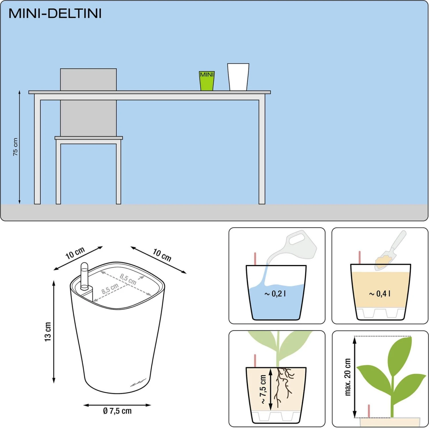 Ob als Tisch-Dekoration, als Mitbringsel bei einem Besuch oder auf der Fensterbank – das Pflanzgefäß „Deltini-Mini“ ist immer ein Hingucker und macht Freude. Und das Beste: Die Gefäße sehen nicht nur erstklassig aus, sondern sie halten Ihre Blumen dank des Bewässerungssystems auch wunderbar frisch!