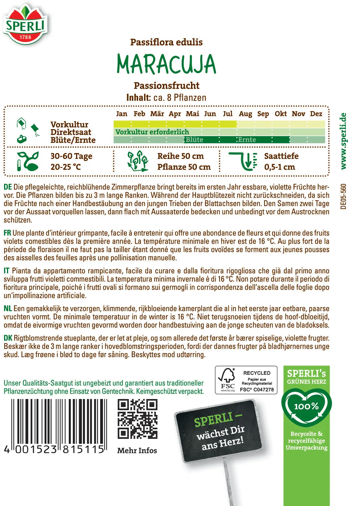 Pflegeleichte, rankende, reichblühende Zimmerpflanze die im ersten Jahr schon essbare, violette Früchte bildet.