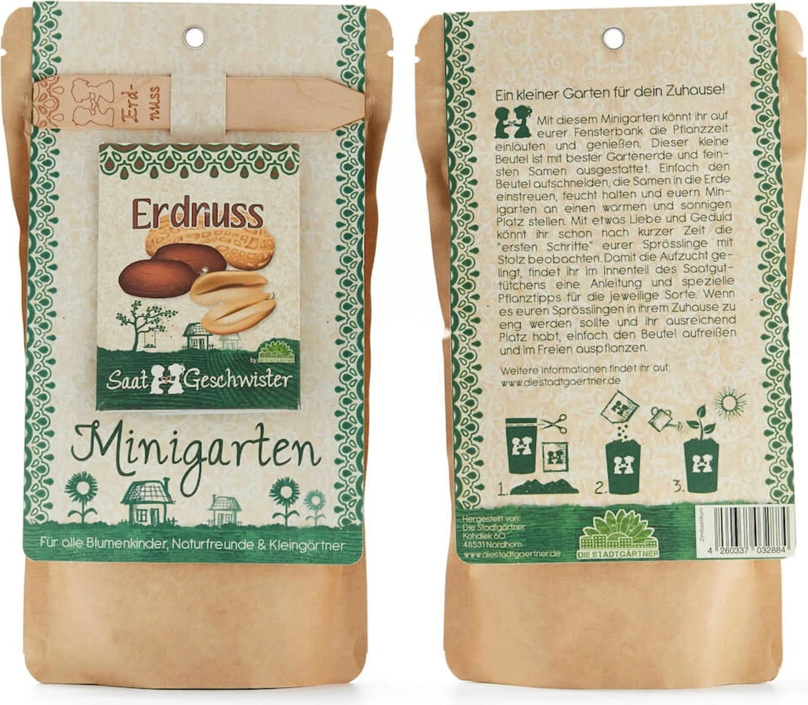 Ob abends vor dem Fernseher oder einfach so zwischendurch, Erdnüsse sind immer eine unwiderstehlich leckere Knabberei. Warum züchtest du köstlichen kleinen Nüsschen nicht einfach selbst? Mit diesem tollen Anzucht-Set ist das überhaupt kein Problem und du brauchst weder einen Garten noch Anzucht-Erfahrung. Liebe, Geduld, Wasser und Sonne reichen aus, um deine eigenen Knabbereien sprießen zu lassen.