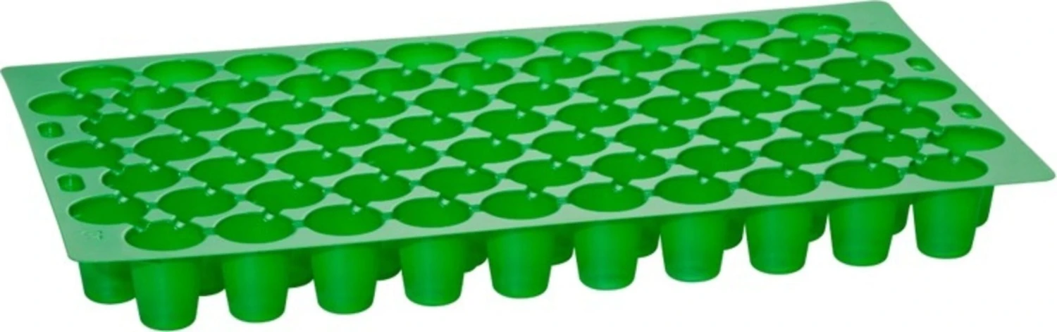 In dieser praktischen Multitopf-Platte finden 73 Anzuchttöpfe Platz.