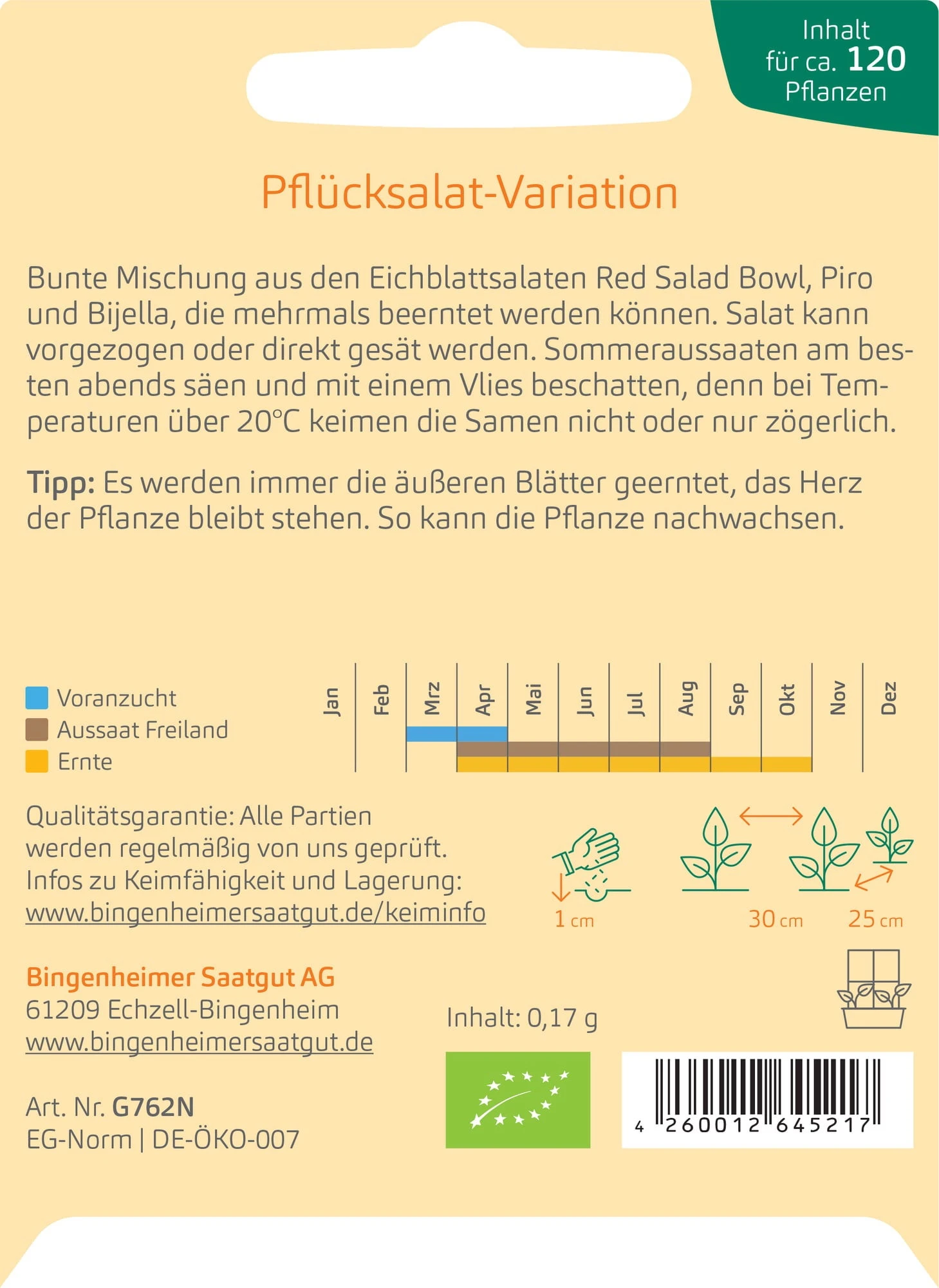 | Inhalt reicht für circa: | 120 Pflanzen |