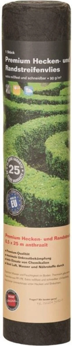 Das Premium Heckenvlies eignet sich hervorragend zur Unkrautregulierung bei der Anlage einer Hecke bzw. von Randstreifen. Mit seiner schmalen Breite von 50 cm muss es nicht mehr zugeschnitten werden, was viel Zeit und Mühe spart. Die Bildung von Unkraut, das von unten an die Hecke wächst, wird wirkungsvoll verhindert. Trotzdem ist es durchlässig für Wasser, Luft und Nährstoffe.