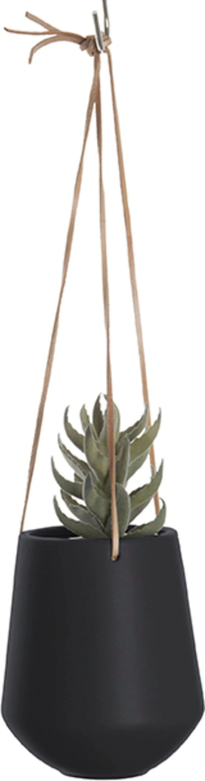 Ob von der Decke hängend, an einem Wandhaken befestigt oder lässig auf dem Regal platziert – dieser Hängetopf sieht immer und überall toll aus. Die Lederbänder wirken ungezwungen und können in der Länge gekürzt werden. Mit der passenden Pflanze ist der Look perfekt.