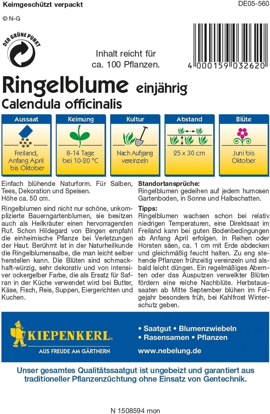 Ringelblumen sind nicht nur schöne, unkomplizierte Bauerngartenblumen, sie besitzen auch als Heilkräuter einen hervorragenden Ruf. Die Blüten sind schmackhaft-würzig, sehr dekorativ und von intensiver ockergelber Farbe, die als Ersatz für Safran in der Küche verwendet wird bei Butter, Käse, Fisch, Reis, Suppen, Eiergerichten und Kuchen.