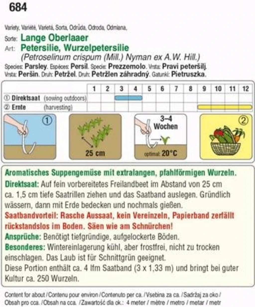 Hinweis: Das Saatband zerfällt im Laufe der Zeit in der Erde.