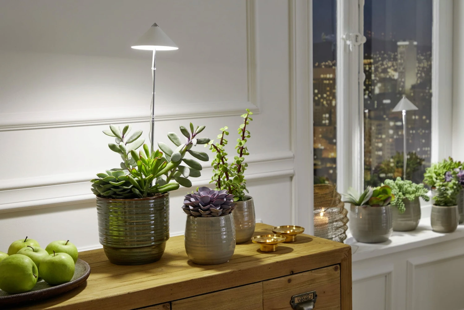 Die speziell für Topfpflanzen mit hohem Lichtbedarf entwickelte „Sunlite 7W“ Pflanzenlampe versorgt diese mit optimalen Lichtwellenlängen und fördert so ein gesundes Wachstum, Photosynthese und Chlorophyllbildung. Besonders praktisch während der dunklen Jahreszeit sowie in eher tageslichtarmen Räumen. Sie lässt sich mit dem bis auf 1 Meter ausziehbaren Teleskopstab unkompliziert direkt in den Topf stecken und verbreitet mit modernster LED-Technik und 14 HI-Power LED Chips ein angenehm warm-weißes Licht, welches dem Tageslicht nachempfunden wurde. Auch optisch ist die stilvolle Lampe ein Highlight, da sie sich mit ihrem puristischen Design harmonisch in jegliche Wohnumgebung einfügt.