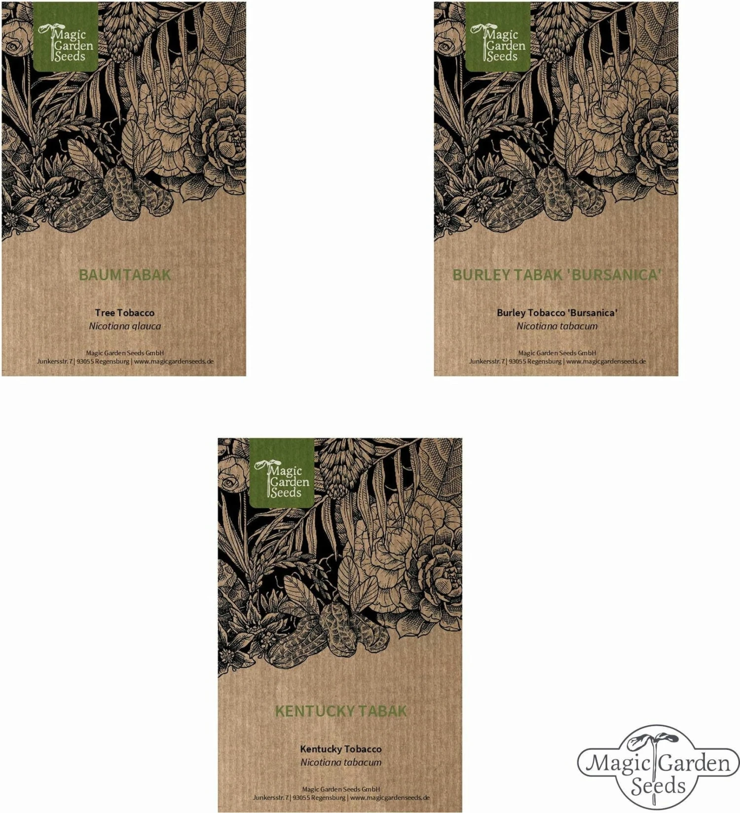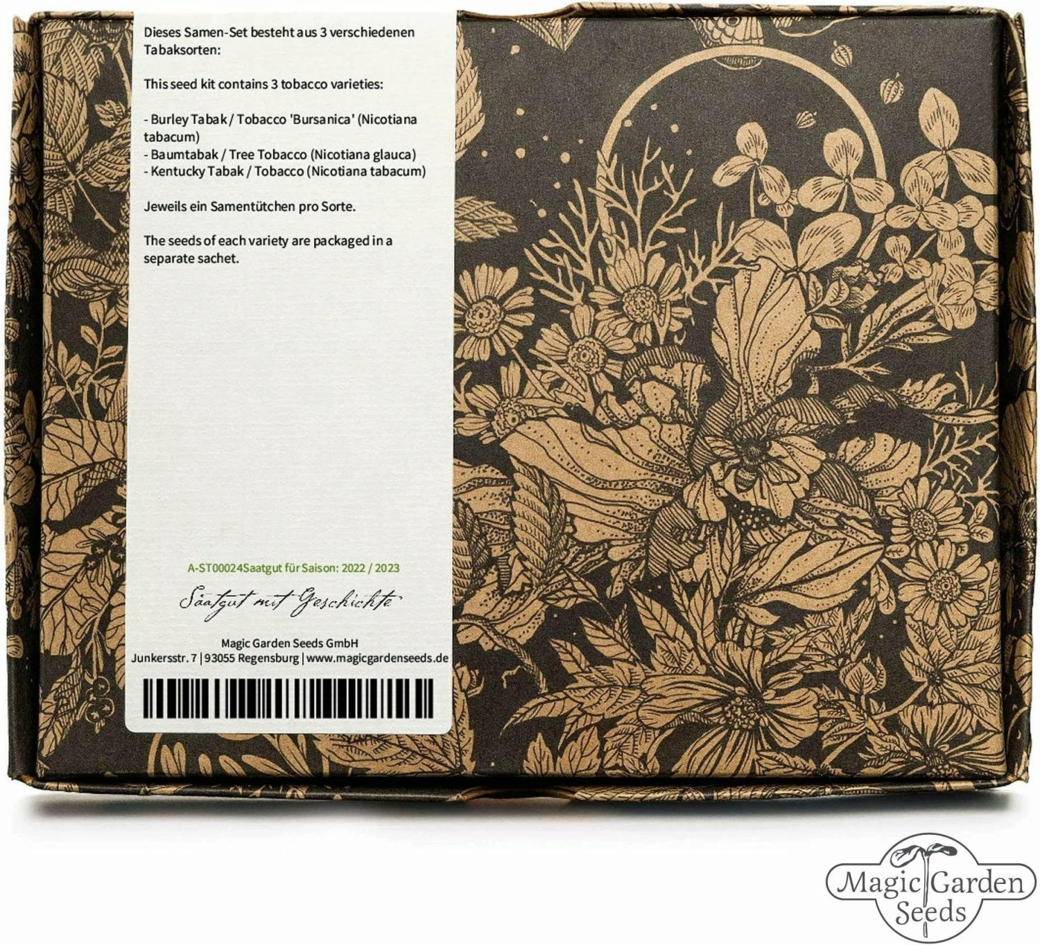 In dieser schönen Verpackung befinden sich vier unterschiedliche Sorten Tabakpflanzen, mit denen du deinen eigenen Tabak anbauen und ernten kannst. Aufgrund unseres Klimas wachsen Tabakpflanzen meist nur einjährig, können aber jedes Jahr problemlos aufs Neue kultiviert werden. Mit ihren großen Blättern und den auffälligen Blüten besitzen Tabakpflanzen außerdem einen hohen Zierwert.
