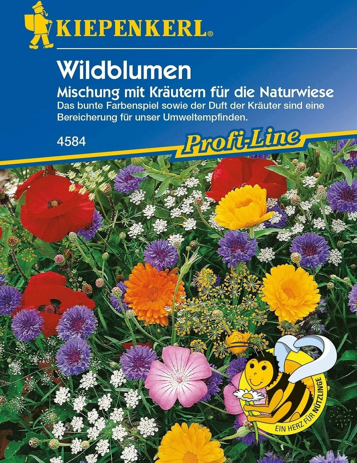 Das bunte Farbenspiel und die Artenvielfalt der Wildblumen sind eine Bereicherung fĂŒr unsere Umwelt. âWildblumen & KrĂ€uterâ können mit Grassamen vermischt werden. Im ersten Jahr (Aprilaussaat) zeigt sich bereits ein farbenfrohes BlĂŒtenmeer. Im zweiten Jahr entsteht dann der typische KrĂ€uterflor.
