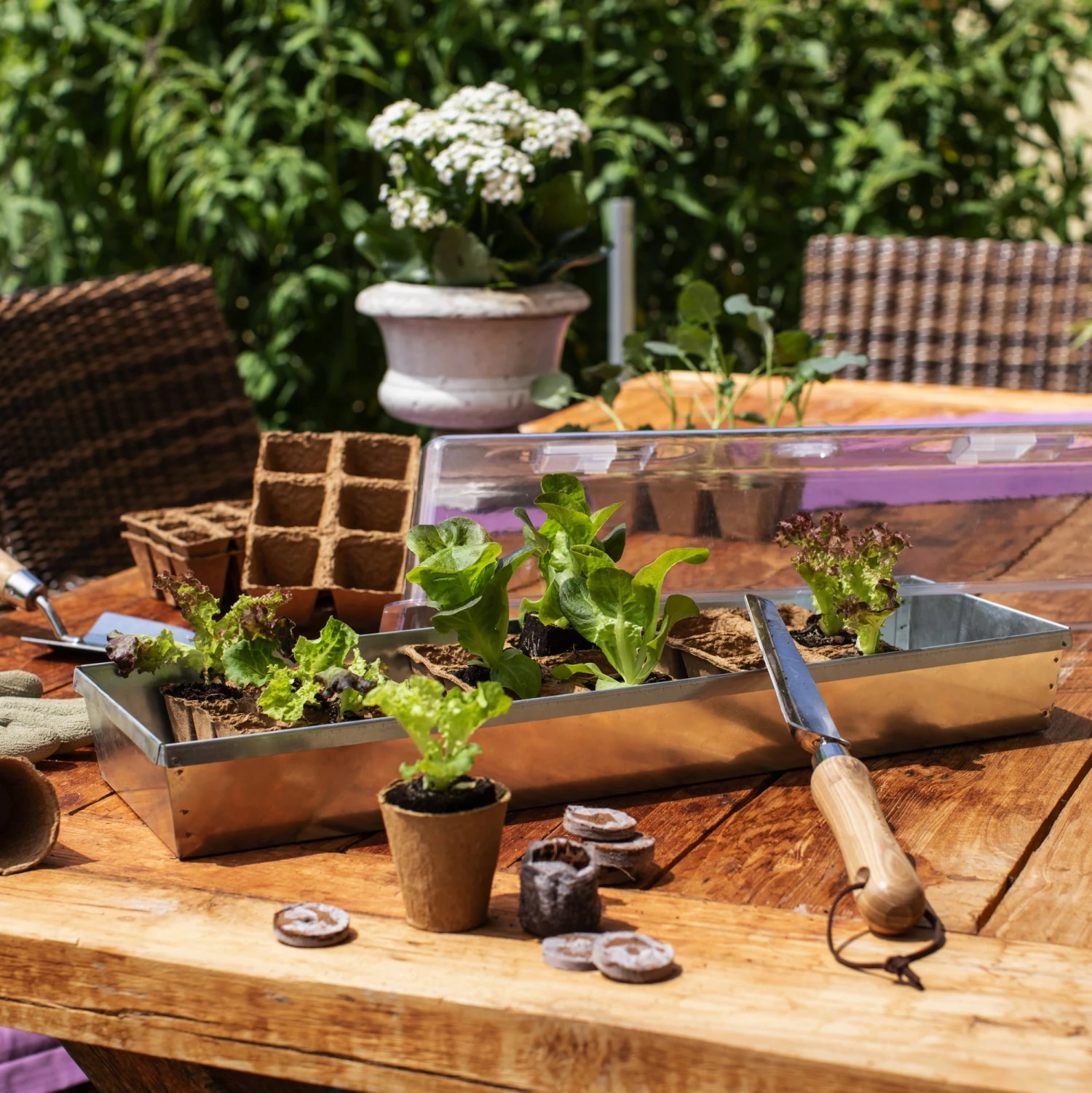 Für die Anzucht von Setzlingen ist diese Aussaatschale aus verzinktem Metall genau richtig. Sie ist bestens geeignet für Terrasse, Balkon und Wintergarten.