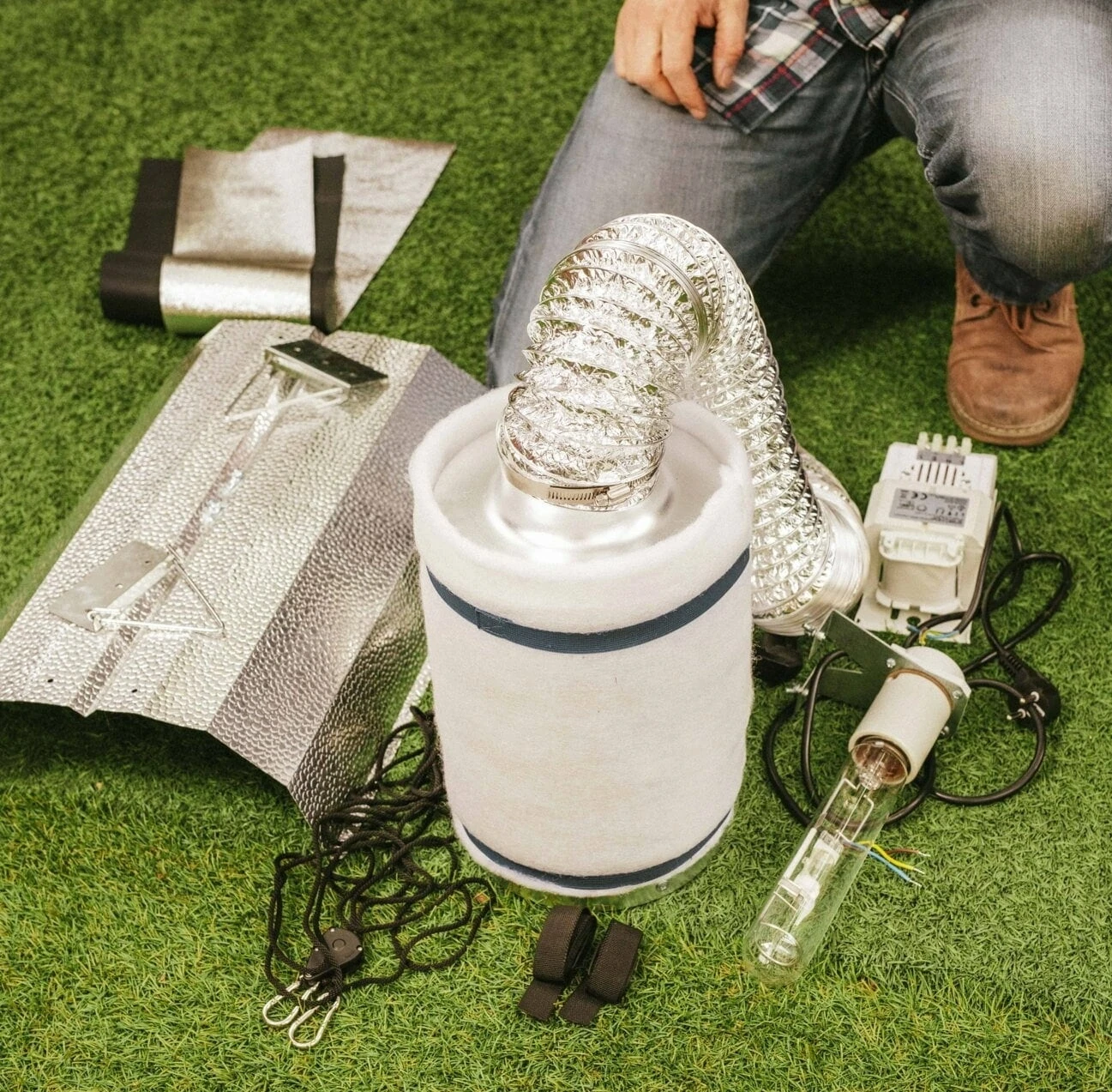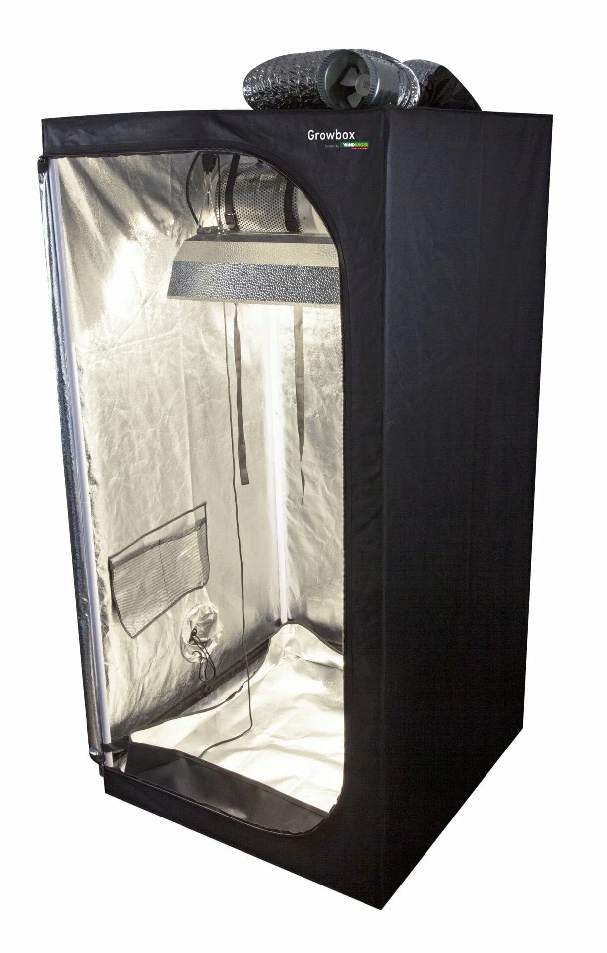Im Set enthalten: 1 Growzelt, 1 Stucco-Reflektor, Leuchtmittel, Stromversorger, 2 Schlauchschellen, 1 Aktivkohlefilter, 1 Rohrventilator, 1 Alu-Flexrohr, Karabiner, SchnĂĽre, Bedienungsanleitung