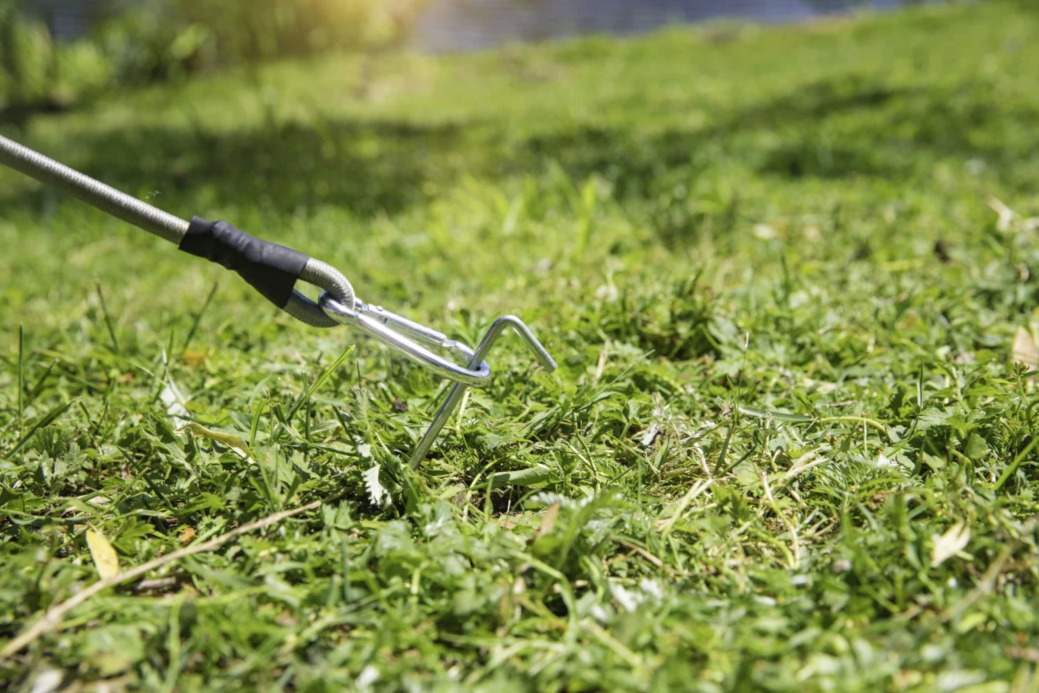 Zur Befestigung von Vliesen und Folien im Erdbereich, sowie zum Spannen von Abdeckplanen.