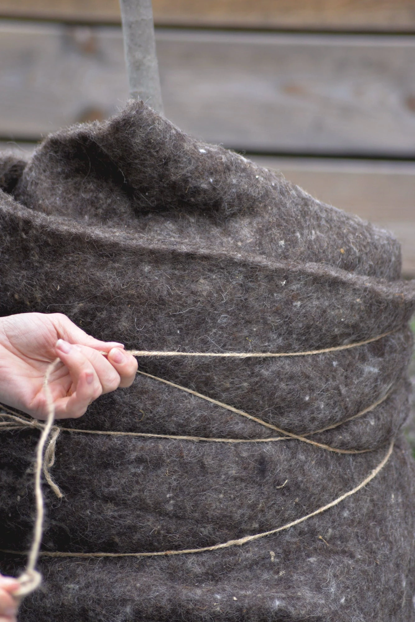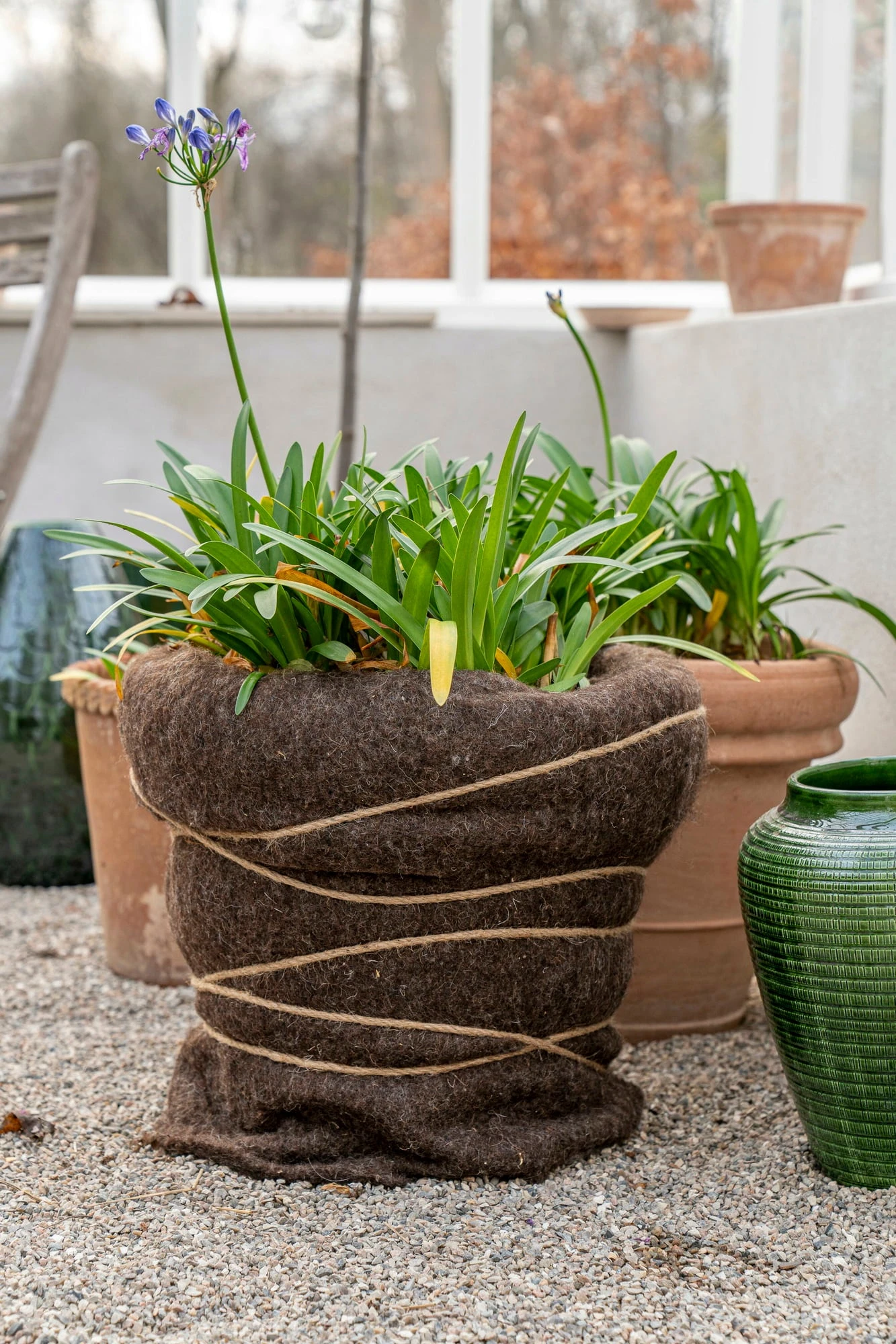 Die Winterschutz Wollmatte ist ein reines Naturprodukt und kann dekorativ um Töpfe und Pflanzen gewickelt werden, um diese vor Frost zu schützen. Auch bewahrt sie Pflanzen vor dem Austrocknen und wirkt Unkrautwuchs entgegen.