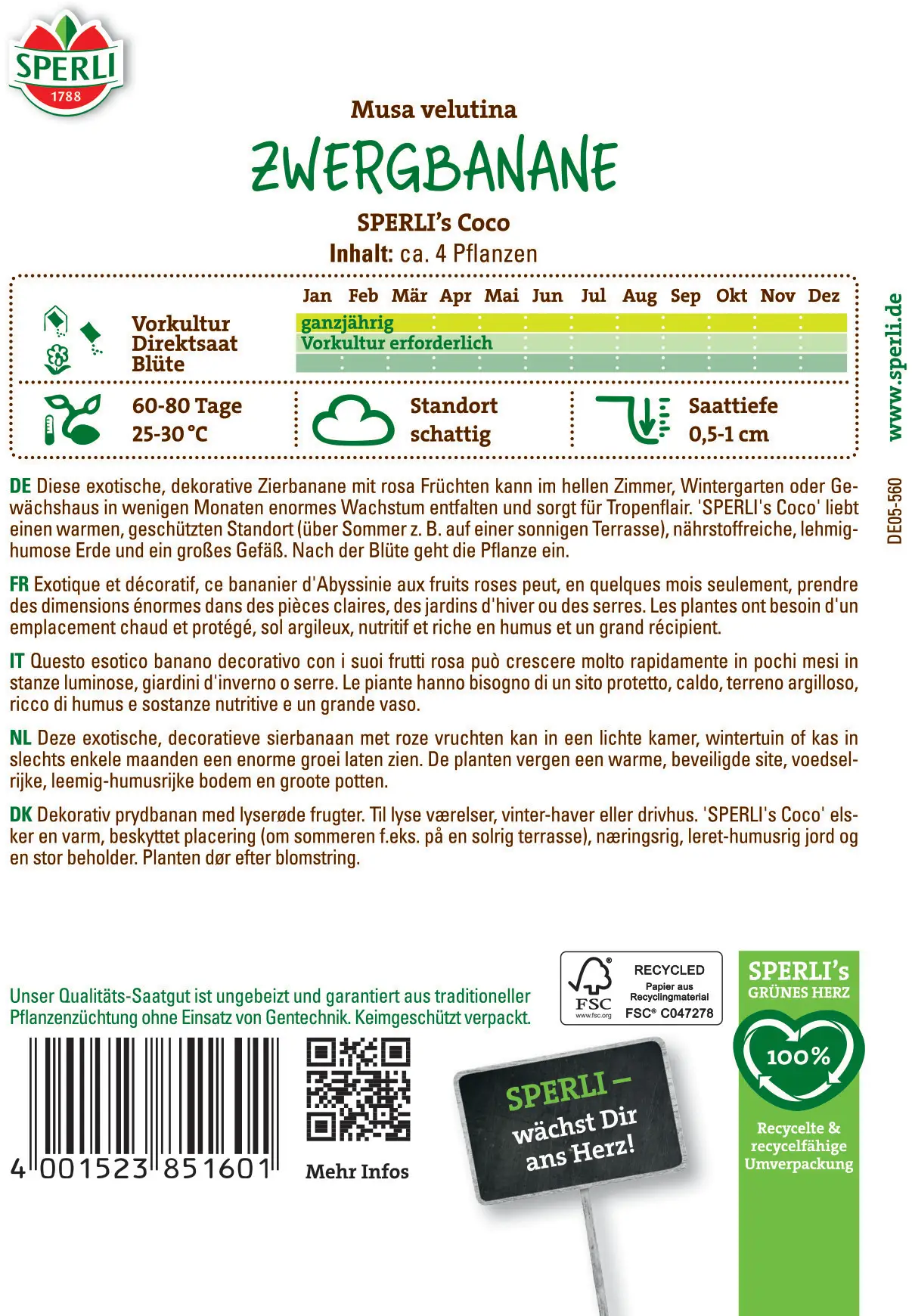 | Aussaattermin: | Ganzjährig |