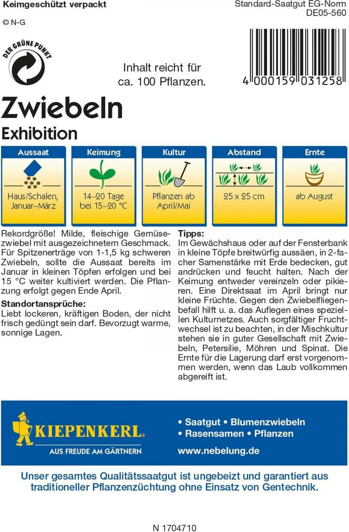Interessante, große Gemüsezwiebelsorte. Dieser Zwiebel-Typ ist wegen seiner Größe uns seines mildwürzigen Geschmacks auch als Fleischerzwiebel u. a. im ‚Döner Kebab‘ bekannt. Für Spitzenerträge von 1-1,5 kg schweren Zwiebeln, sollte die Aussaat bereits im Januar in kleinen Töpfen erfolgen und 15°C weiter kultiviert werden. Die Pflanzung erfolgt gegen Ende April.